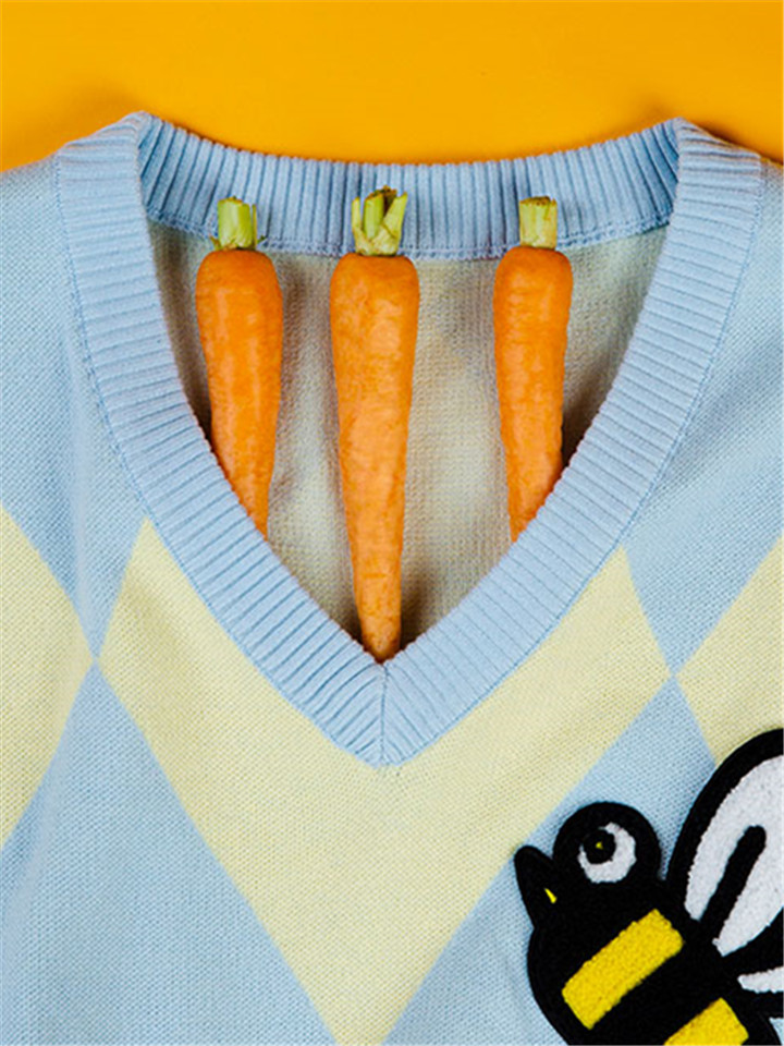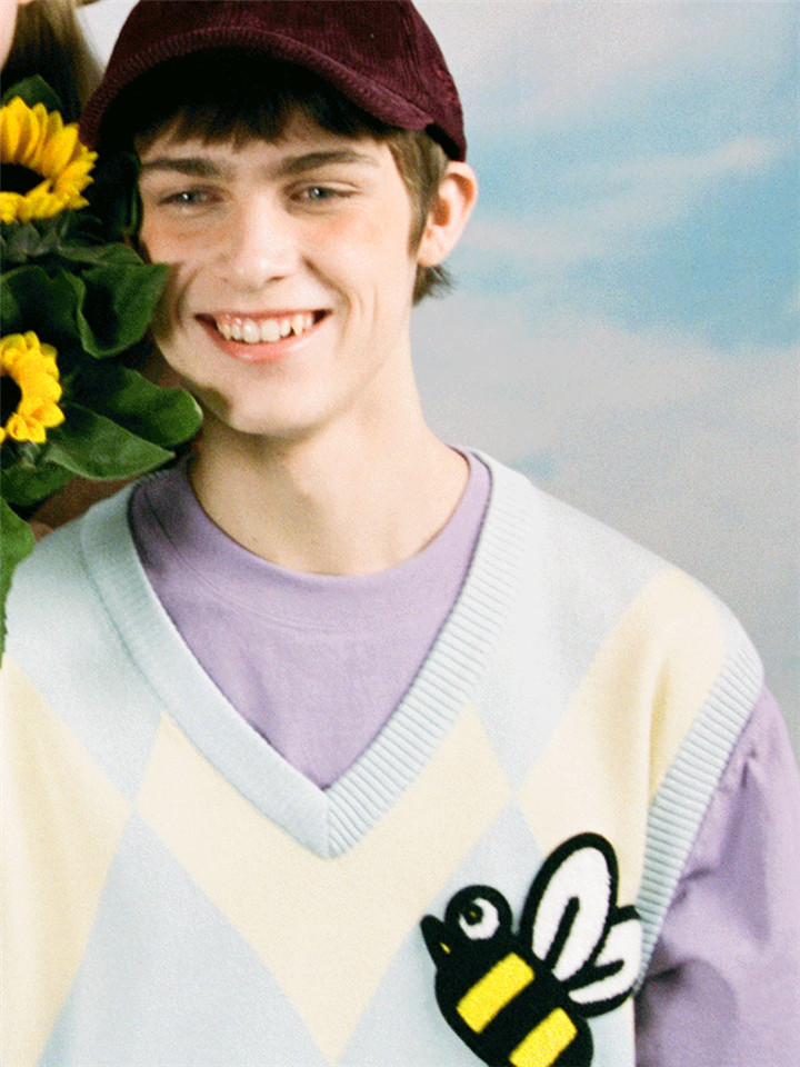 将小蜜蜂的造型,刺绣在胸口处,生动形象,使其具有活泼的色彩感,令着装富有别致的潮流感。