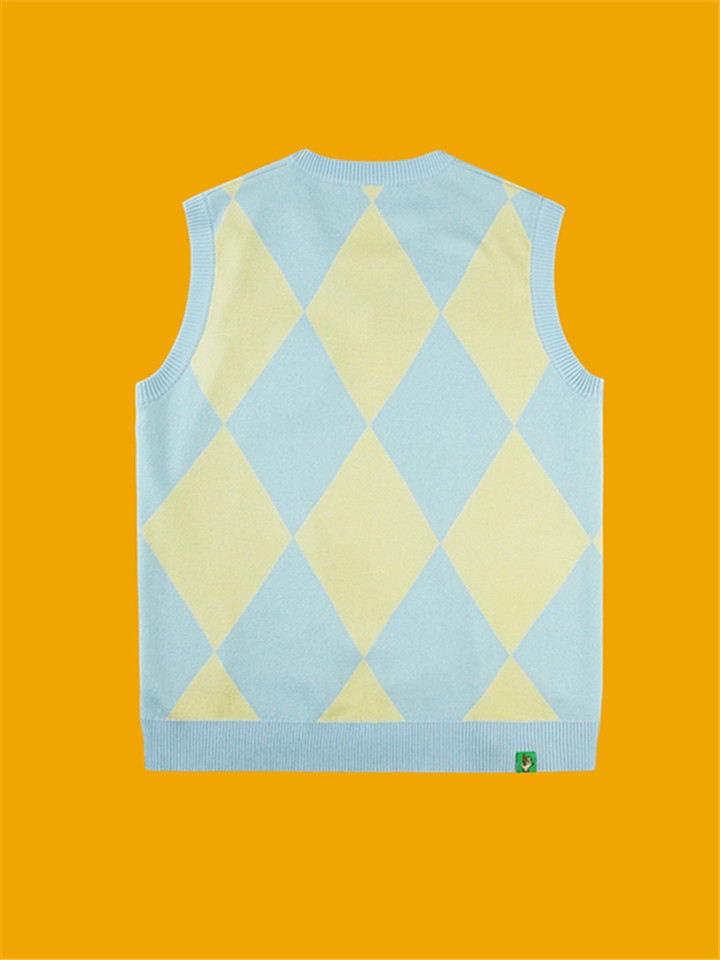 其衣面的色貂,用浅卡其与浅蓝的菱格纹交织,塑造出清新可人的风格感,着装上身潮流范儿十足。