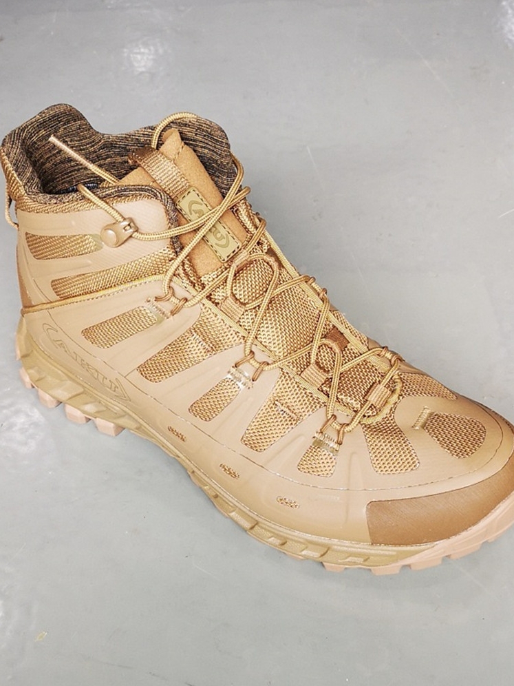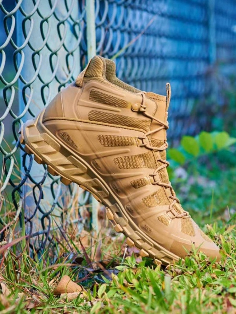 这款战术军靴采用中帮设计,在保护脚踝的同时也保证温暖,也比高帮来的更加活动舒适。