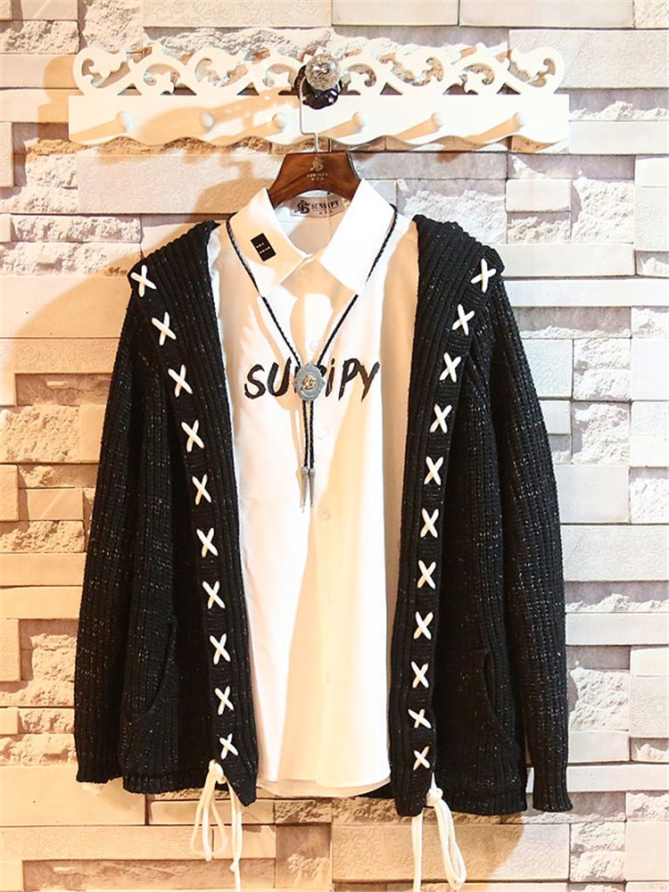 经典西装领,绅士风十足,经典连帽设计,防风保暖,连帽的设计,潮流感十足,日系风格,彰显青春活力,袖口绑带设计,个性十足,上衣连帽设计,休闲时尚,针织材质,穿着舒适透气。