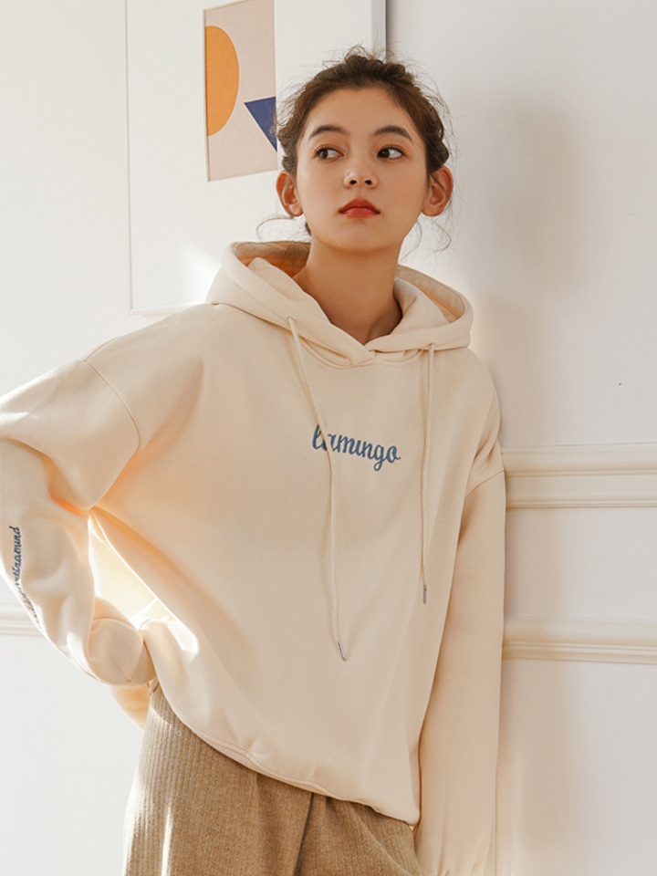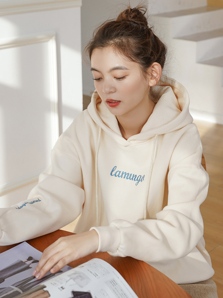 宽松的落肩卫衣,完美的藏住你的小肉肉,又可修饰颈部线条,字母图案装饰让简约的版型变得丰富多彩。