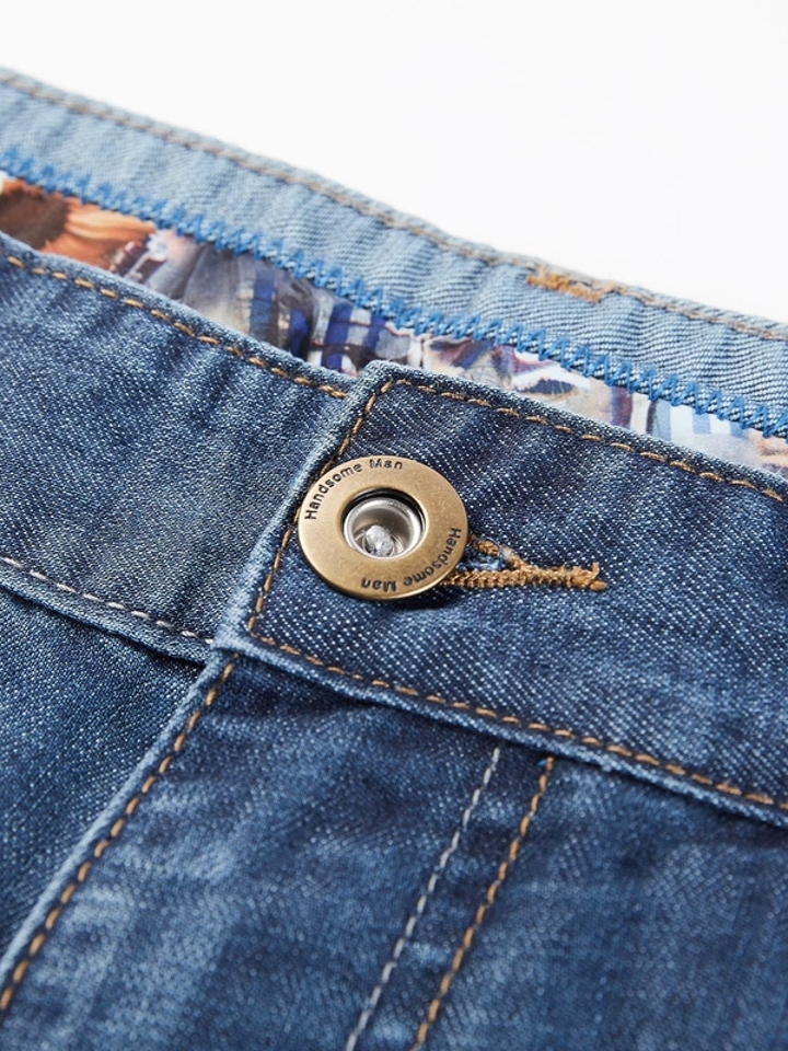 牛仔裤采用上等棉纤维面料,且其含棉量较高。棉纤维面料具有很好的吸湿性,棉纤维面料可向周围大气中吸收水分,其含水率为8-10%,接触皮肤时感到柔软而不僵硬,上身十分舒适。