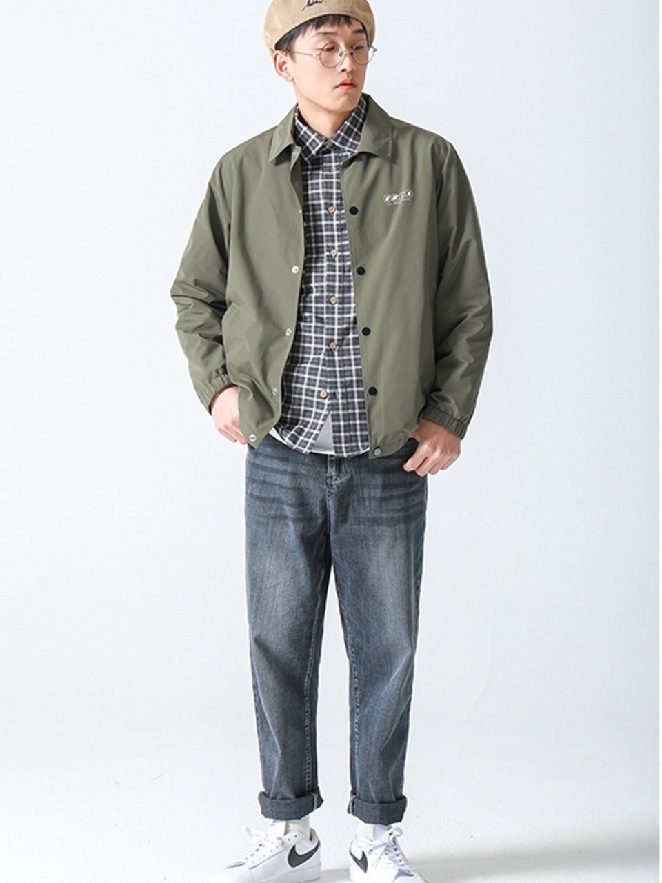 翻领设计干净利落,按扣门襟简约复古。宽松袖口设计,穿衣方便,不卡手腕,简洁大方。斜插式口袋,方便使用简约大气。手感柔软舒适。
