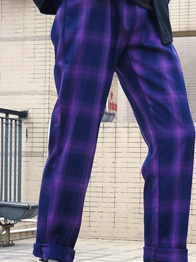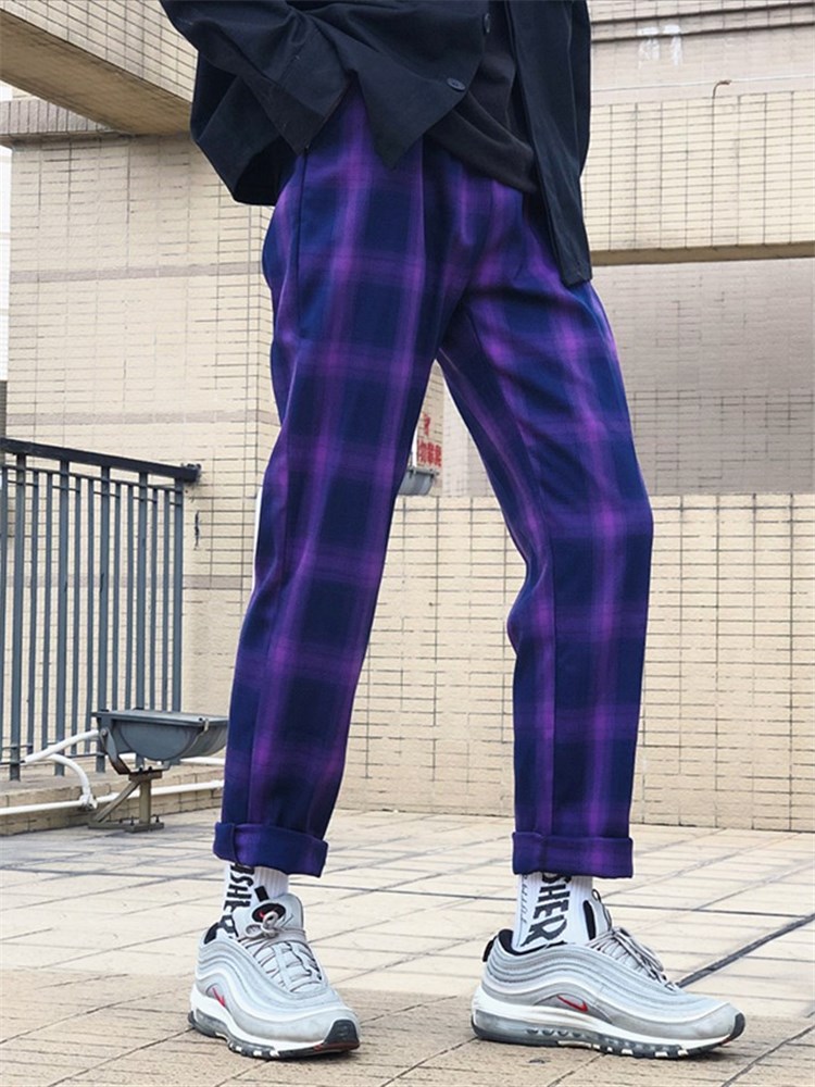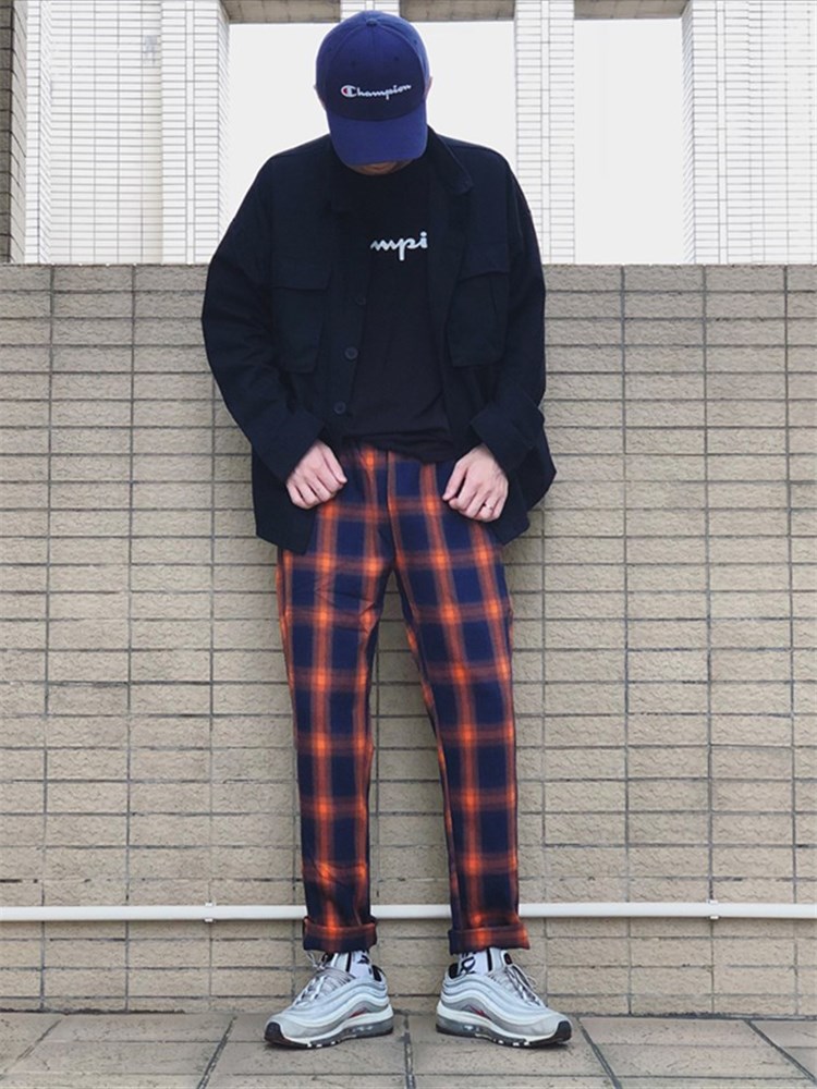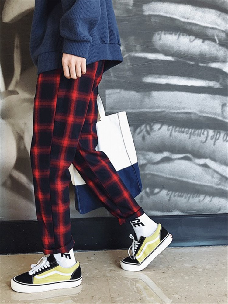 宽松版型,穿着舒适自在,黑白格子裤子,复古文艺。
