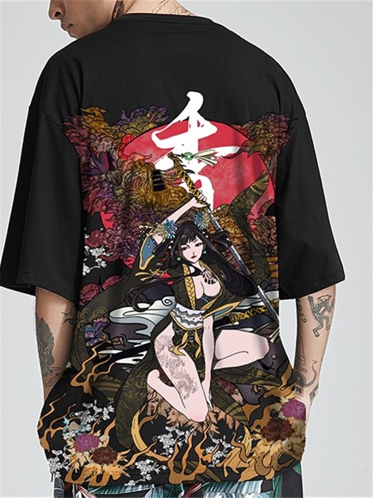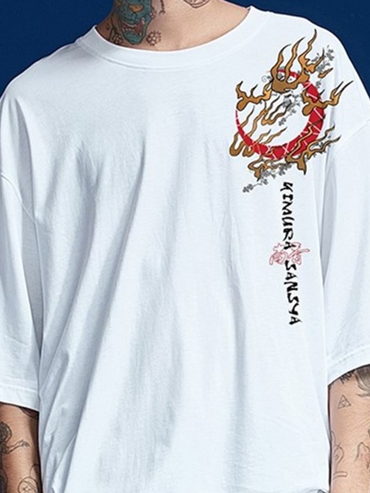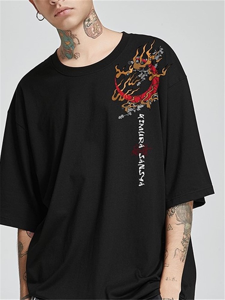 原创设计,让人眼前一亮,汉字印花,彰显男士魅力,宽松T恤,让你轻松驾驭,手工彩绘图案,精致美观。