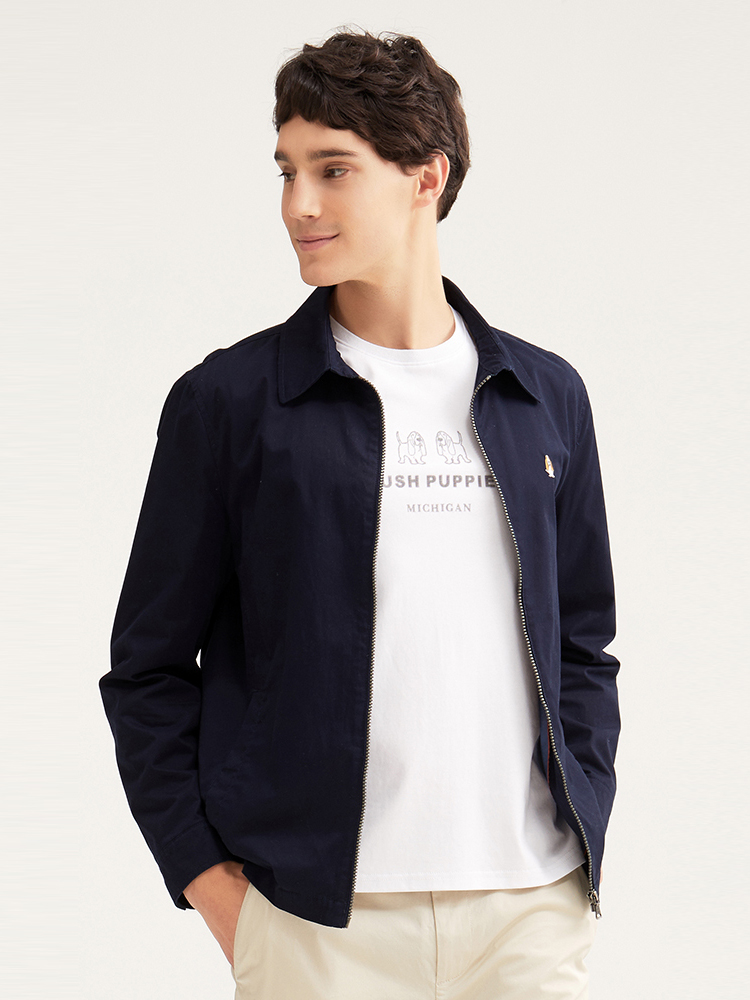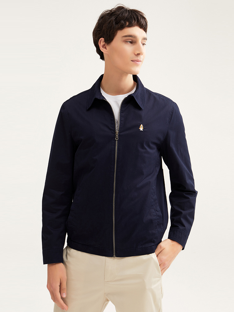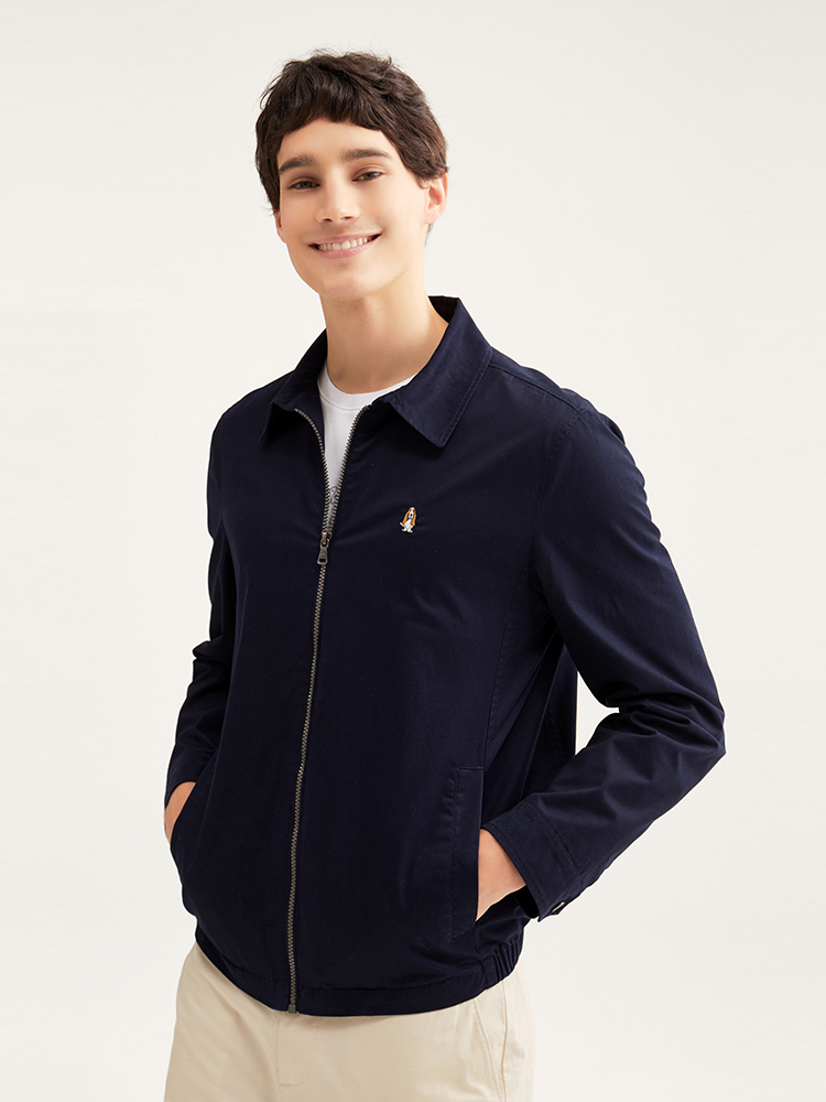 这款夹克风格简约,翻领的设计有种正经的感觉。衣服上是拉链的款式,方便穿脱,不会有累赘感。