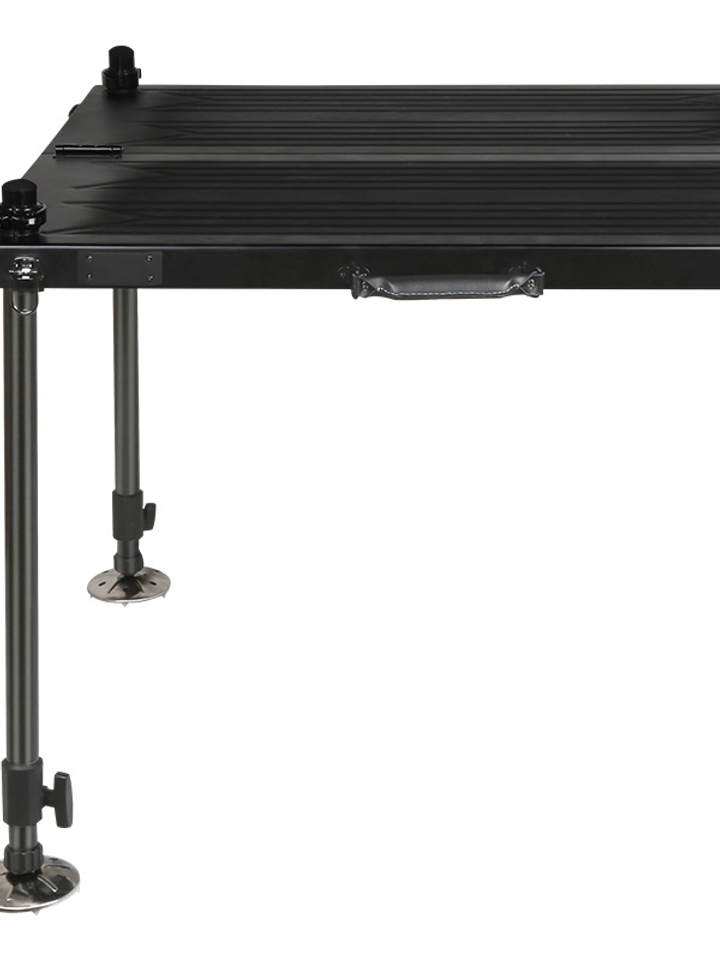 此款大钓台精选航空级铝合金制造而成,不仅具有超强的承重能力,而且拥有卓越的耐磨耐刮功能。钓台卡槽宽3.5cm钓台前后两端均设又卡槽。优质不锈钢钢脚爪,抓地型号不容易打滑。