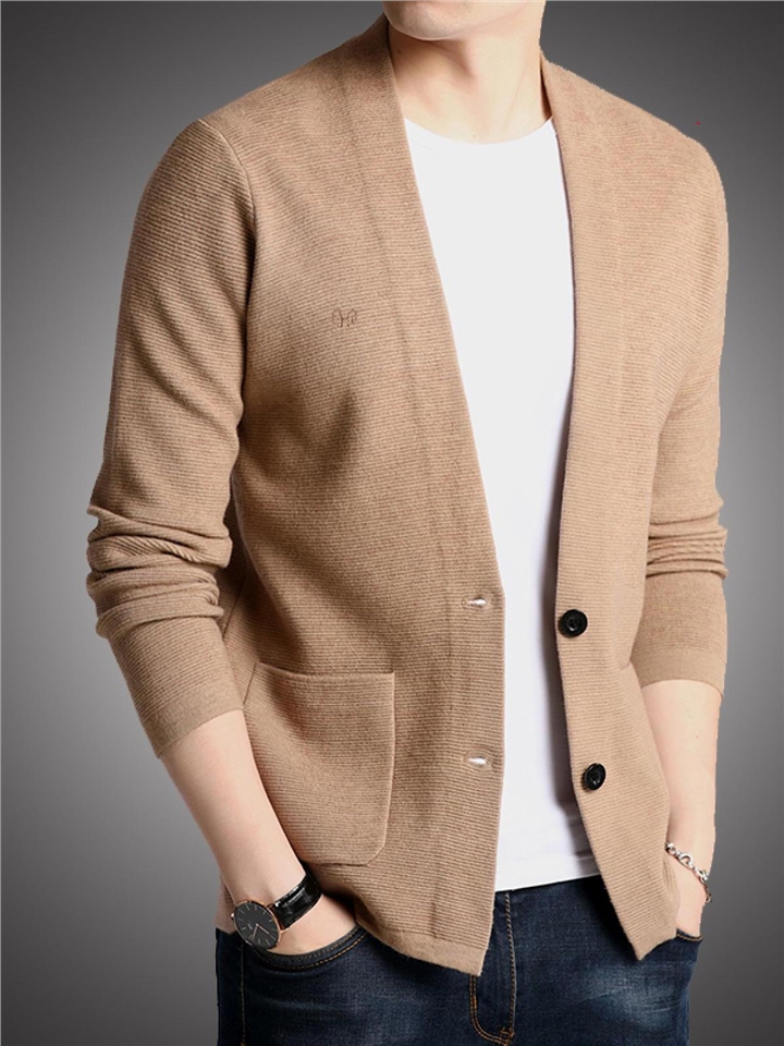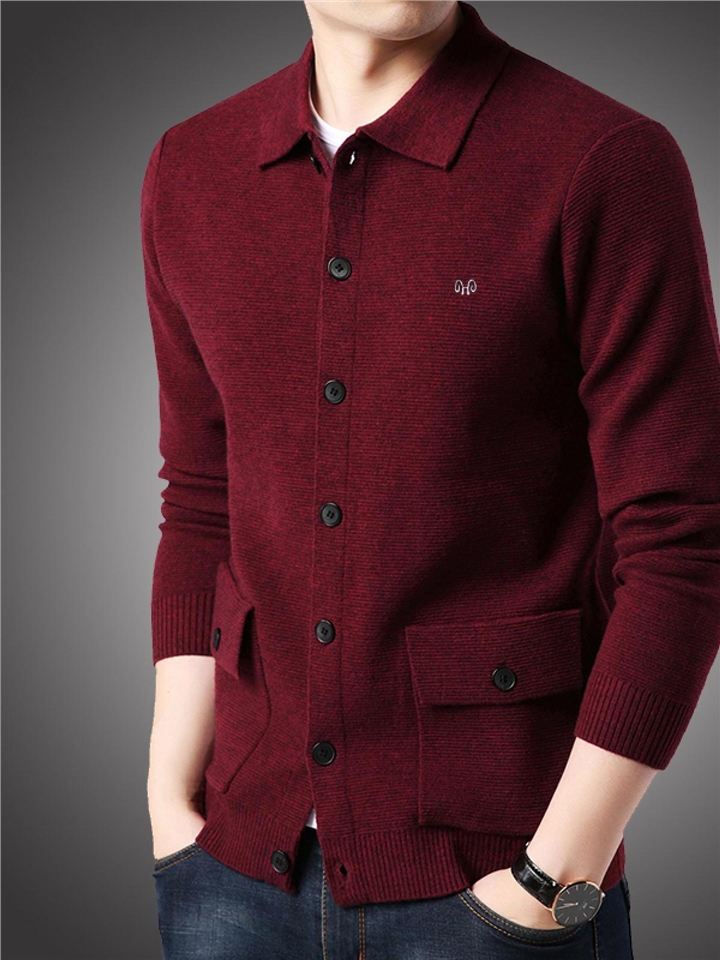 宽松版型,穿着舒适自在。纯色针织衫,简约又百搭。翻领设计,凸显男士魅力。
