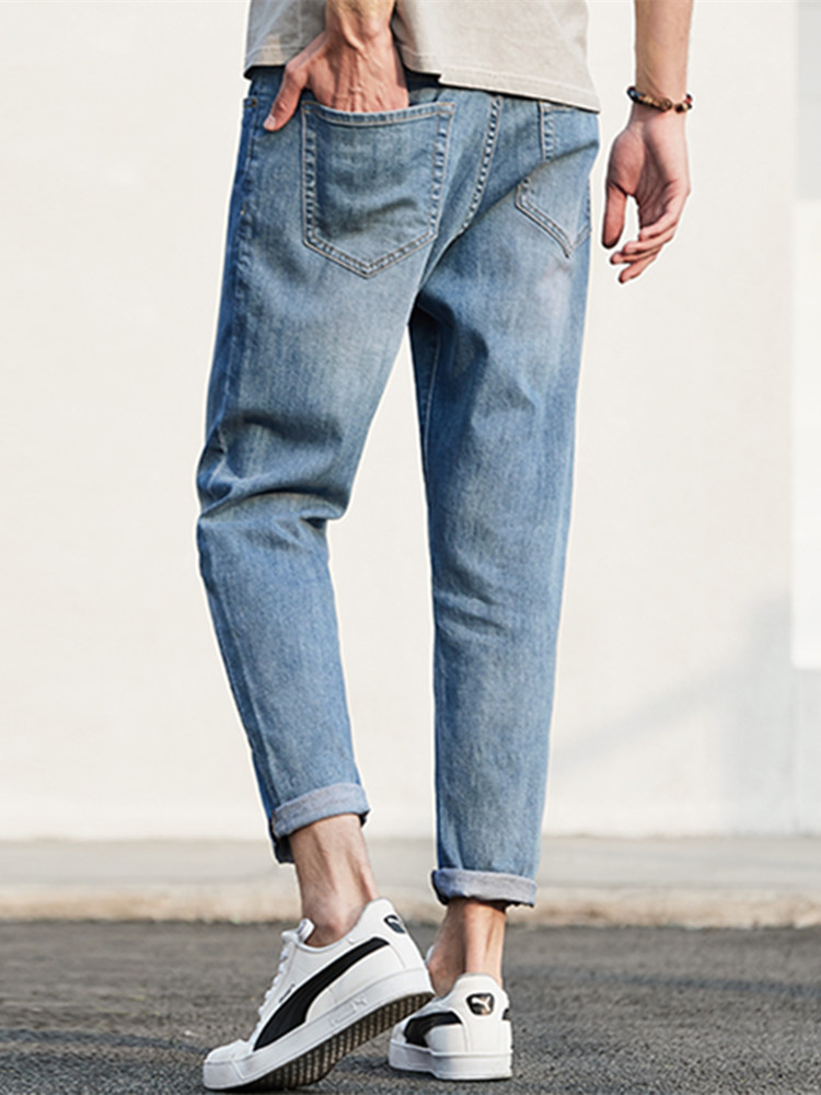 一条十分休闲简单的牛仔裤,流畅的剪裁线条直筒版型舒适没有拘束感。