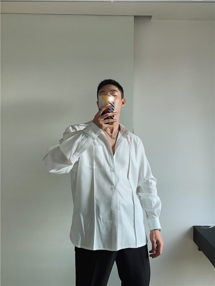 原创设计,让你彰显个性,纯棉材质,穿着舒适透气,翻领设计,简约而不简单,衬衫翻领,修饰颈部线条,经典百搭,适合各种场合。