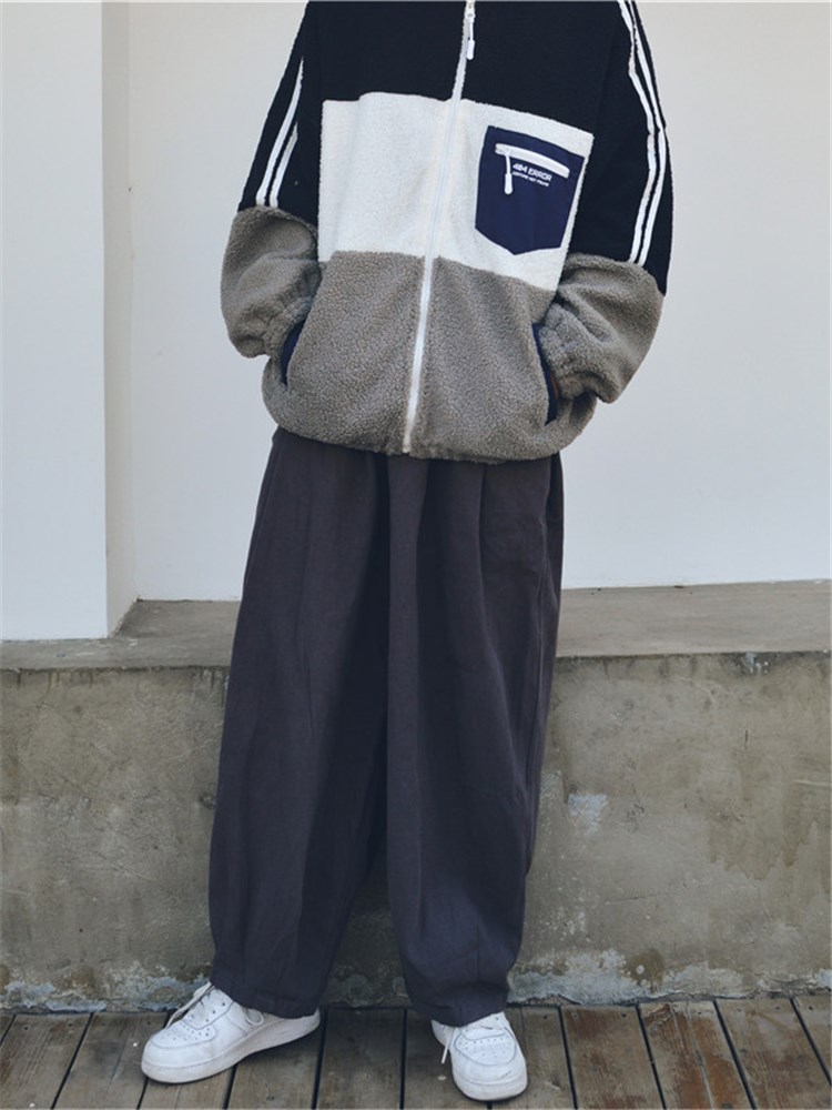 哈伦裤版型,显瘦显腿长,两侧插袋设计,方便实用,锥形版型,修饰腿部曲线,宽松的版型,慵懒又随性,经典复古风格,时尚百搭,宽松版型,穿着舒适自在。