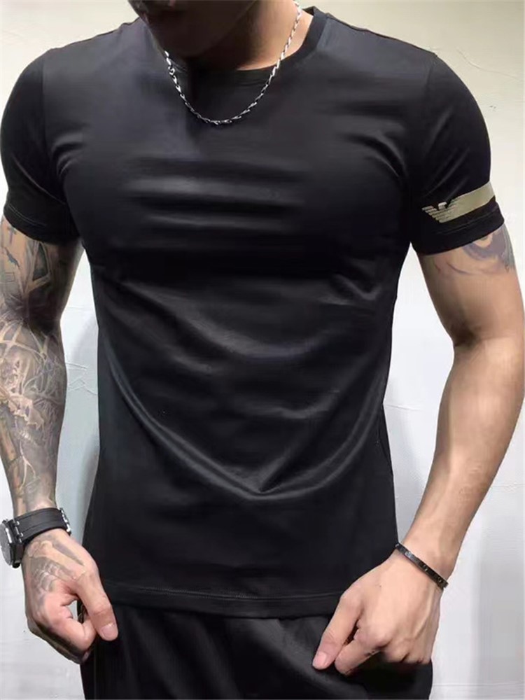 这款T恤采用优质面料,手感柔软舒适,亲肤透气,经典的圆领设计,简约大方,穿着舒适。