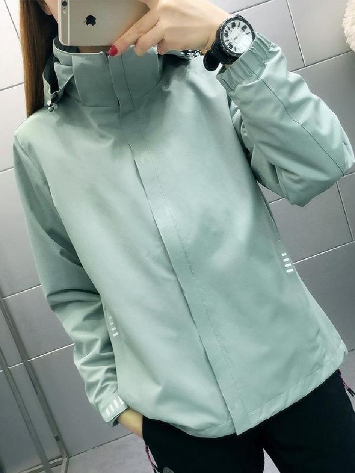 高领连帽设计款冲锋衣,纯色的设计彰显青春时尚气息 。轻量级的防风技术,同时耐磨与略硬挺的面料特性让冲锋衣在外形上可以大限度的保证上身的挺括感。