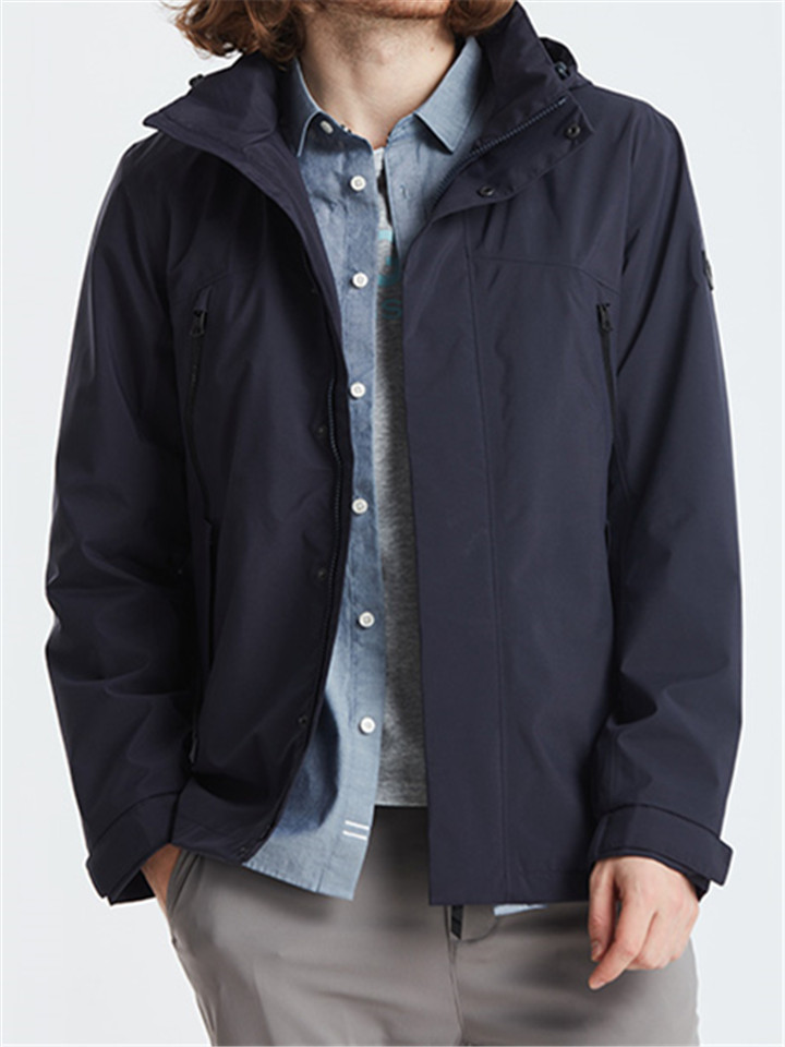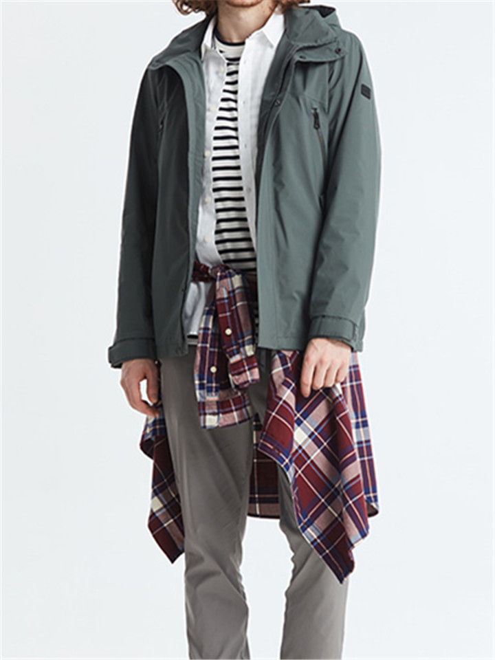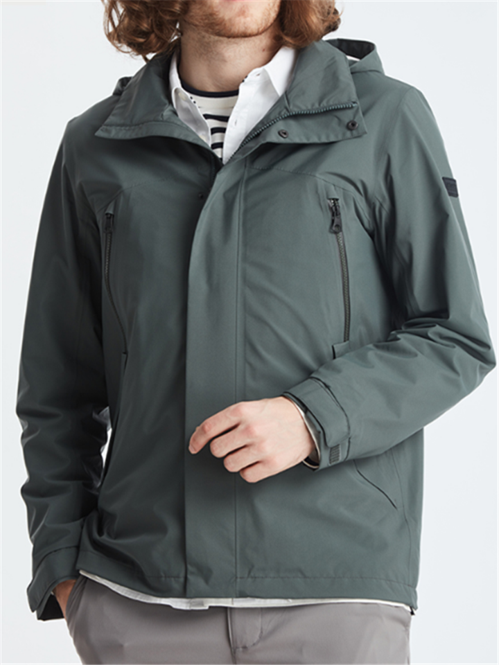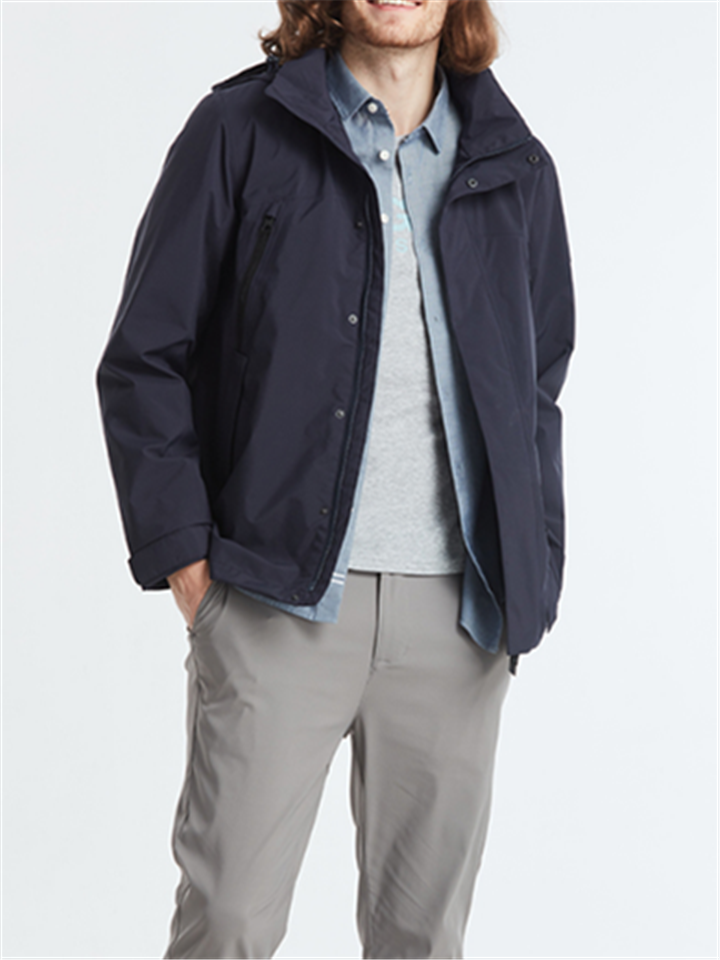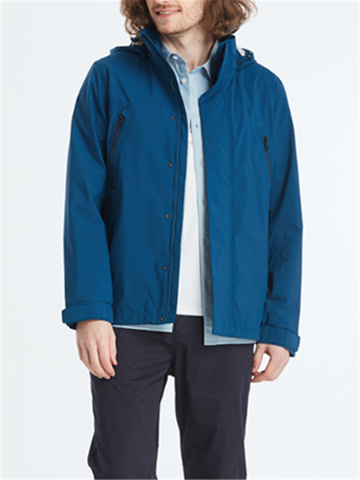 配有可拆卸设计的兜帽,通过耐用的金属按扣与服装相连,帽边内置有可调节松紧的抽绳,调节使用简便,在复杂的户外环境里为头部提供有效的保护。