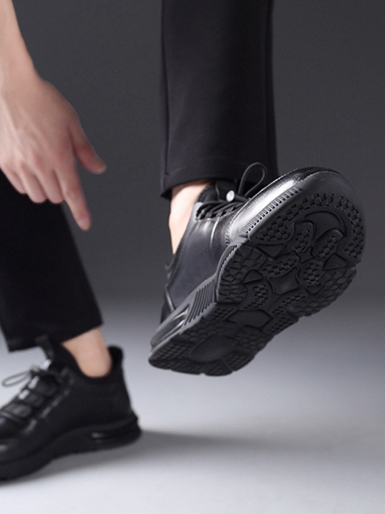 鞋底设置锯齿状的纹理,能增大鞋子的摩擦力,穿上后不会滑倒。便捷的系带闭合方式,让穿脱变得更加方便。