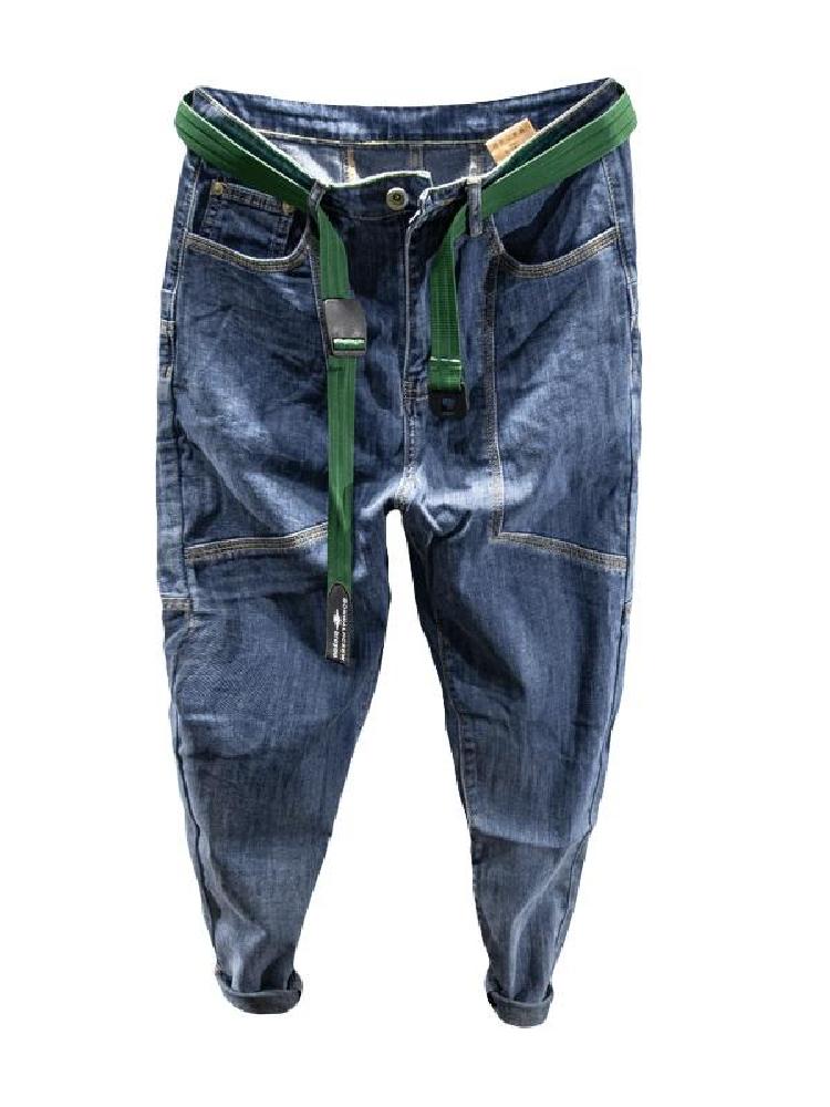 帅气的牛仔裤,清新自然的牛仔蓝搭配小脚的裤型,再配以九分的长度,刚刚好足够帅气,不会过于张扬,也不单调。