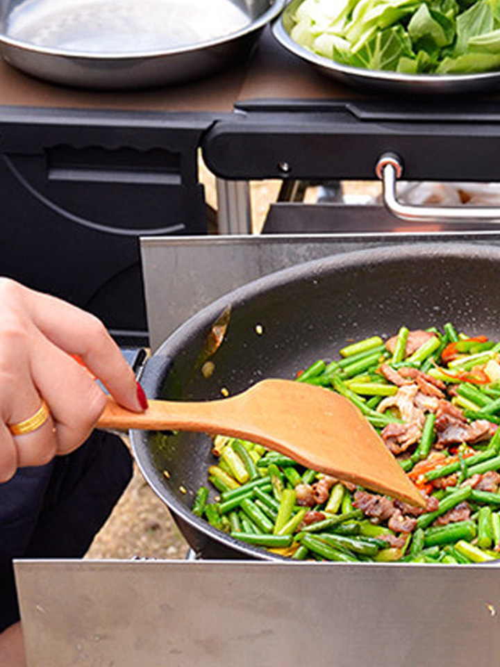 出门野营肯定第一解决吃住,携带的东西越轻越好,这款厨具,加热导热也快,野营时用它来烧菜极好。