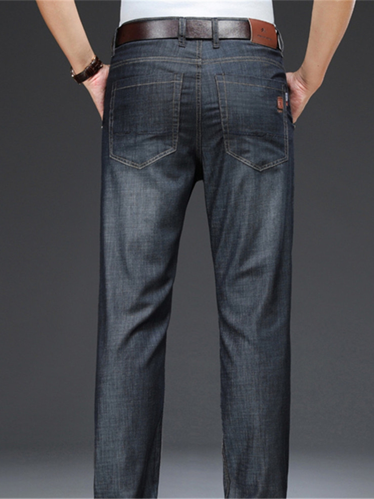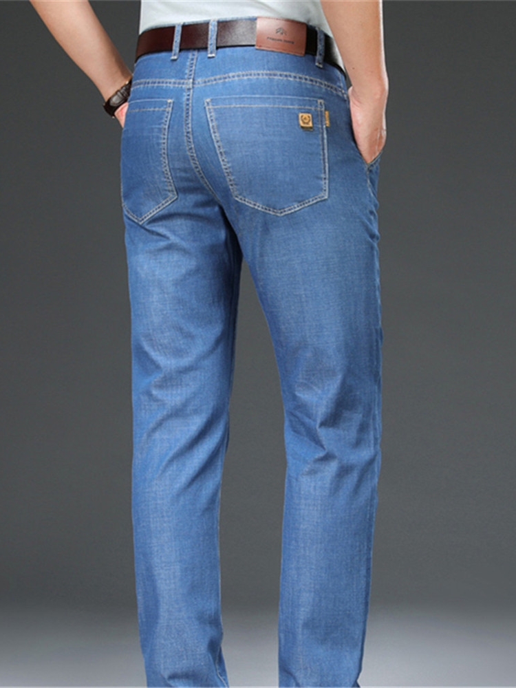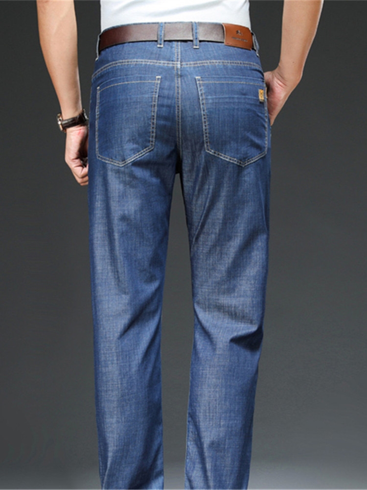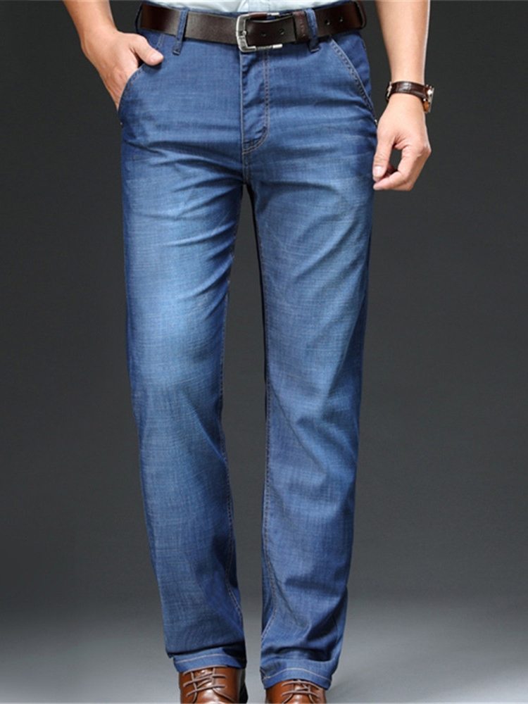 夏季喜欢穿着薄款的直筒冰丝牛仔裤,搭配上身的圆领T恤衫,无论是工作还是休闲时候都可以穿着。