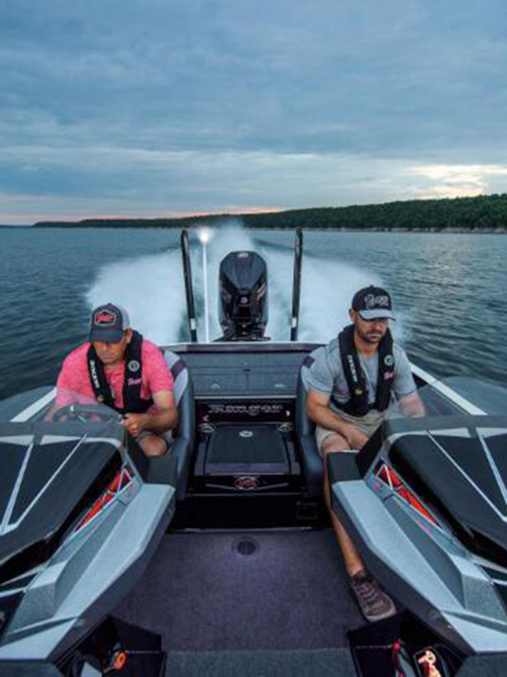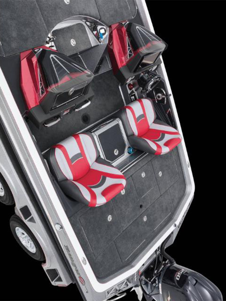 这款路亚艇船内空间宽敞,可坐5人,且设有活鱼舱、储物舱、油箱舱、竿舱等多个舱室,可满足日常钓鱼需求,钓鱼椅柔软舒适,久坐不累。