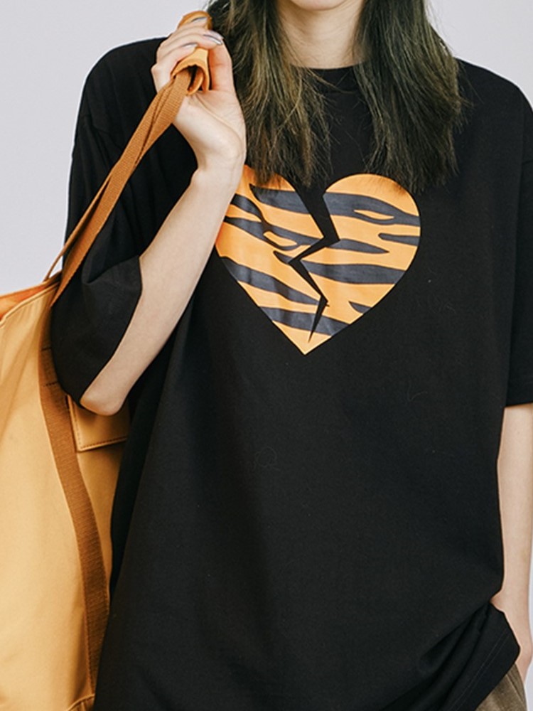 宽松的版型,休闲感十足,圆领短袖,修饰手臂线条,五分袖设计,穿着更舒适,半袖设计,修饰手臂线条,胸前印花图案,个性吸睛。