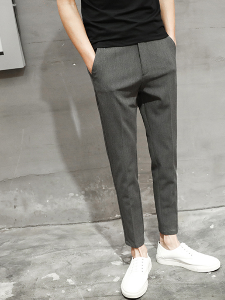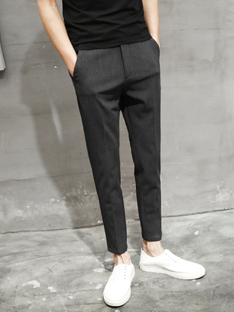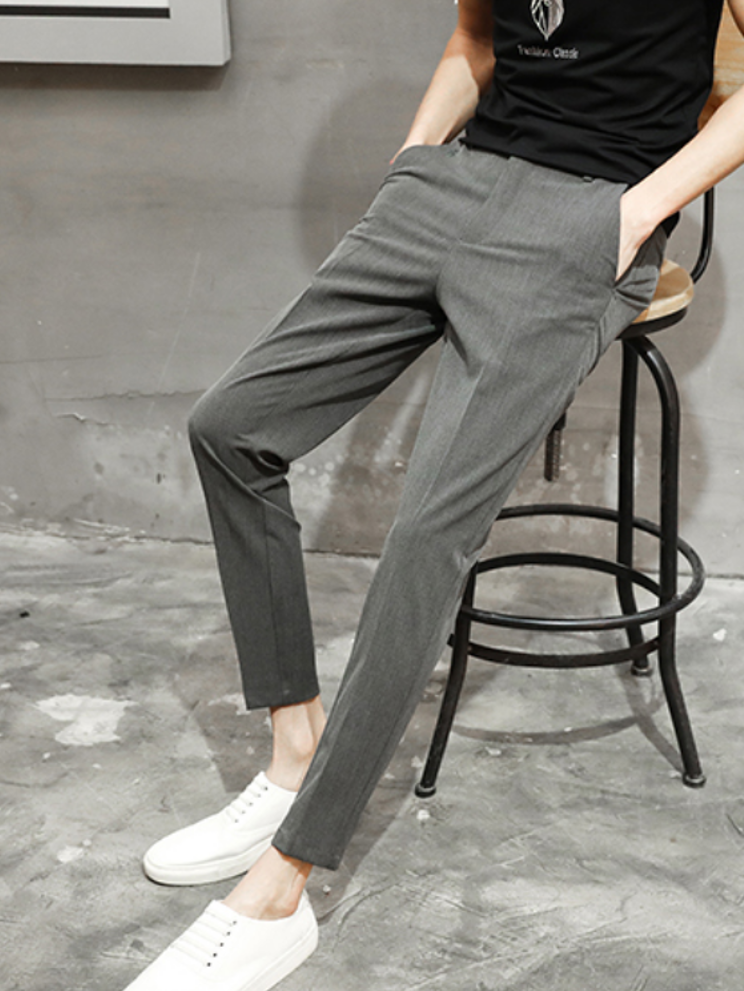 超级帅气的一款九分裤哦,立体裁剪,修身时尚!更窄的腰头设计,穿着毫无束缚感,简约插手口袋设计,裤脚略窄设计,经典英伦雅痞范。