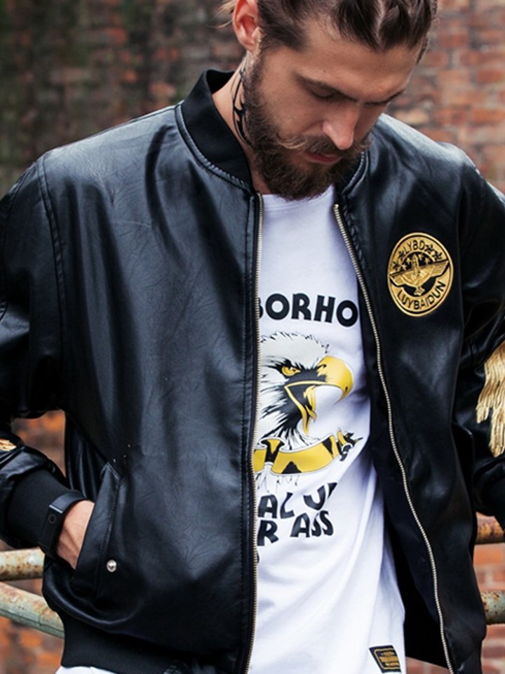 皮衣的设计,帅气又有型。精致刺绣,彰显品牌魅力。