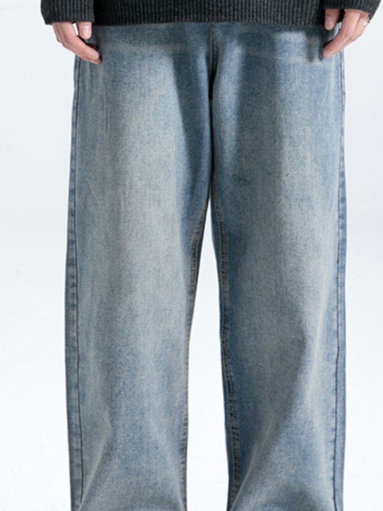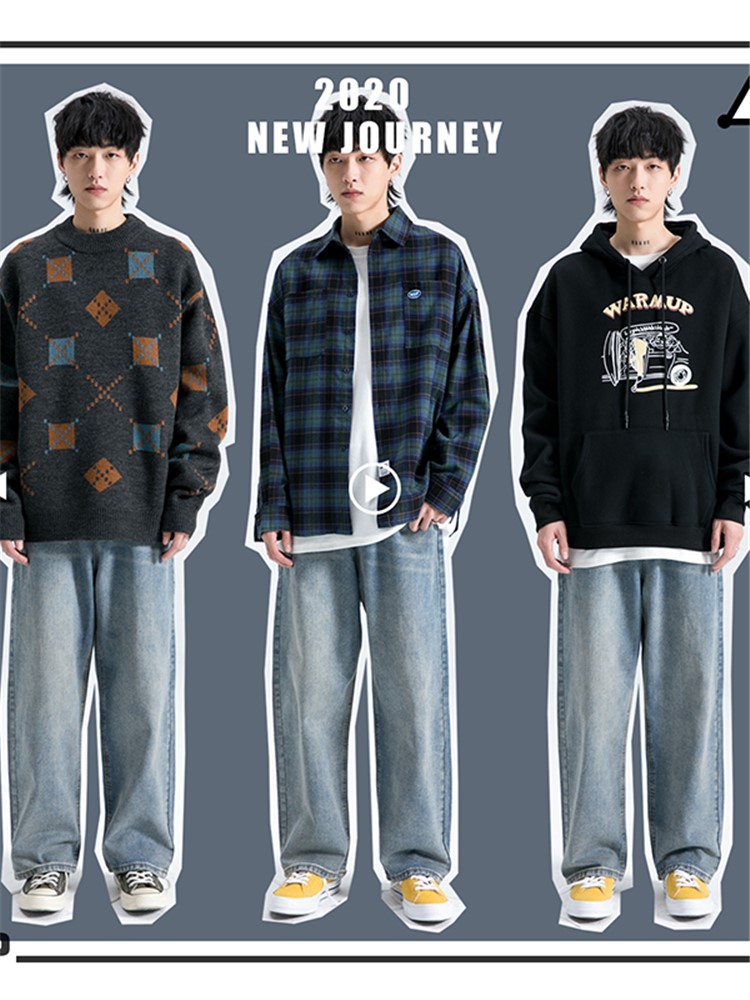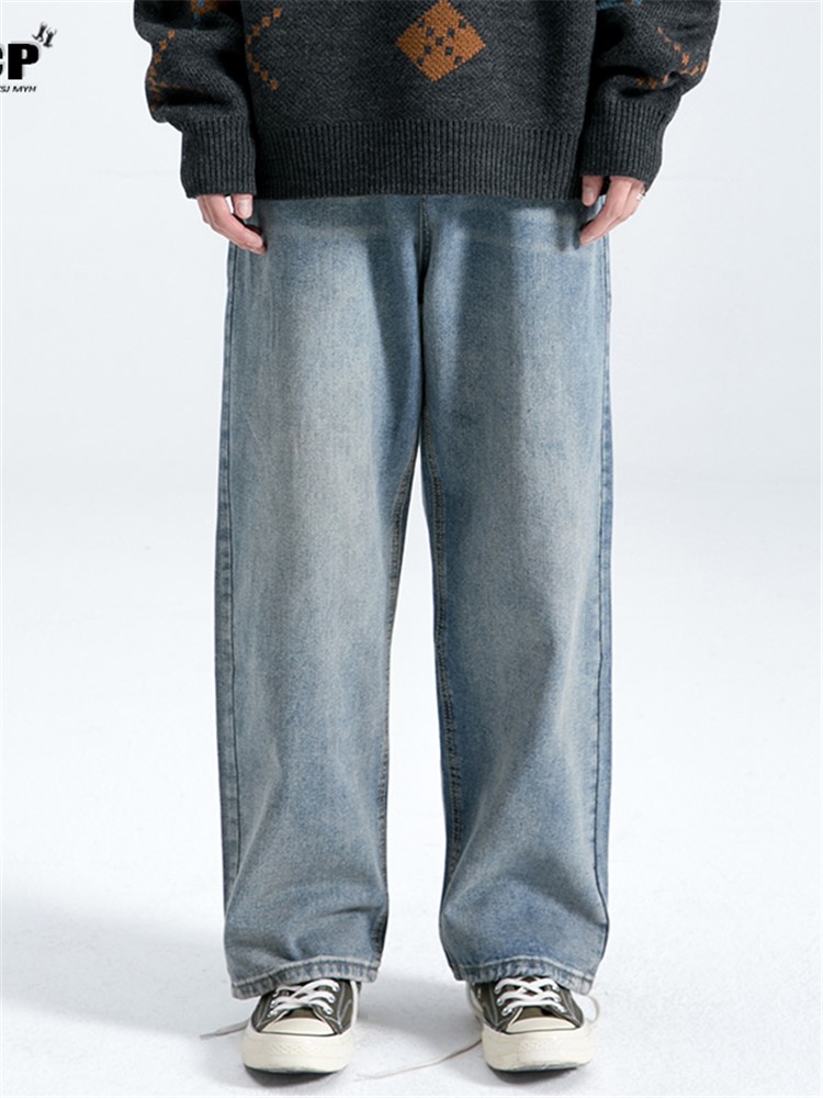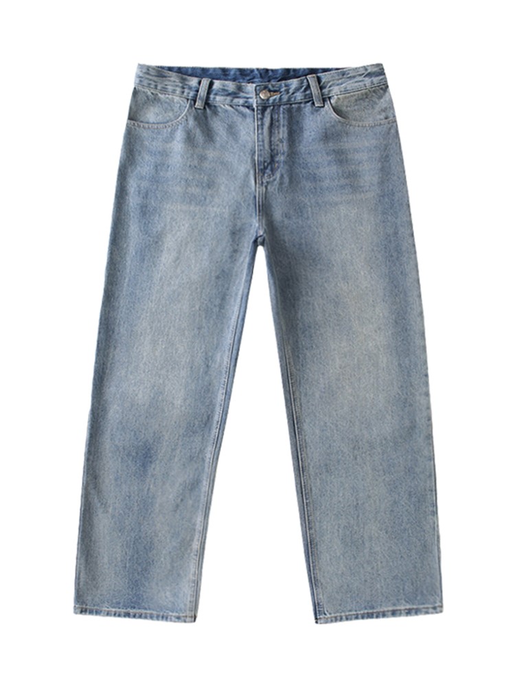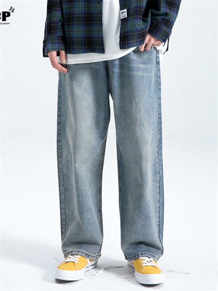 纯棉牛仔面料,舒适透气,做旧的处理,复古感十足,宽松直筒版型,修身显瘦,美式复古风格,时尚百搭,宽松版型,穿着舒适自在。