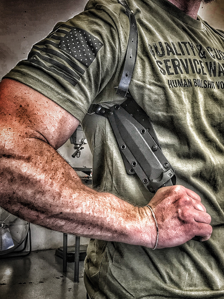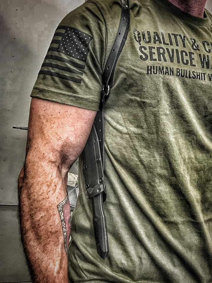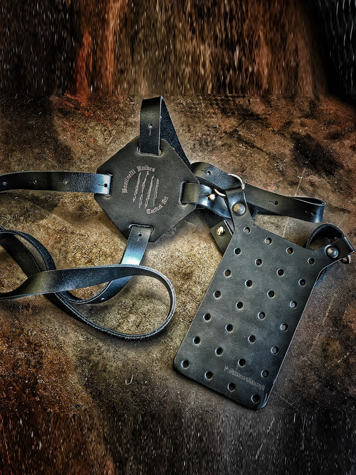 集众多特性于一身,有灵活性和舒适度,皮革肩套是可调节的,几乎所有巴斯蒂内利战术直刀都可与护套兼容,也可用于大多数其他制造商的刀。