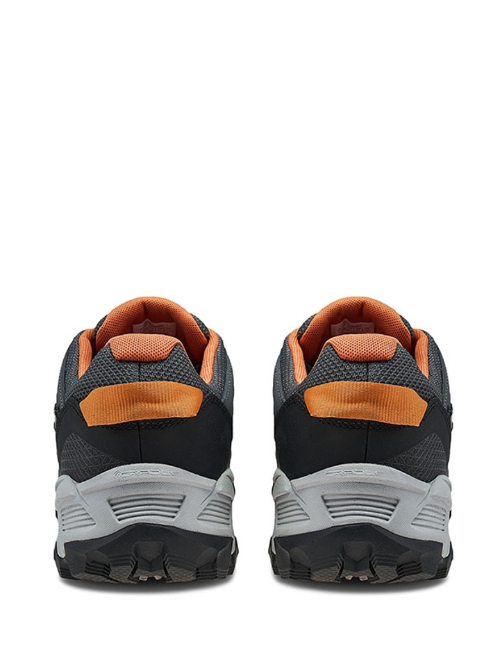坚硬有型的防护鞋头,可有效减小外力冲击,为足尖提供舒适防护,从容应对户外复杂地形,轻松搭配运动裤,很适合户外登山等运动。