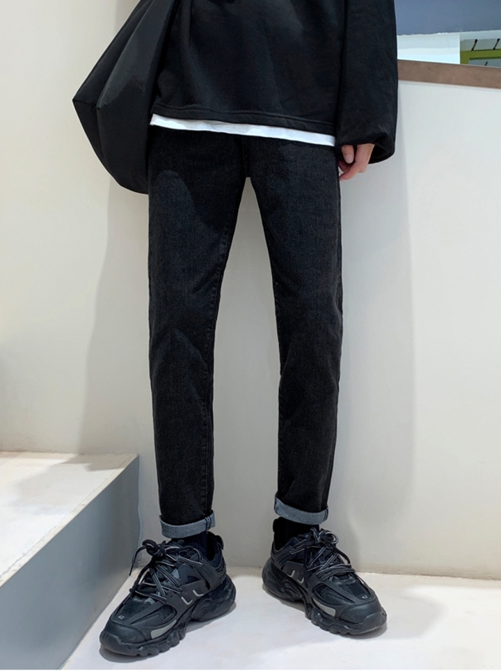 直筒牛仔裤一直都是许多男士的大爱,这款直筒小脚的牛仔裤,能够更好的修饰腿型不足的缺陷,而且小脚的收口,还具有拉伸腿长,视觉显瘦的效果。纯黑色的面料,更是给人一种神秘色彩,增加了显瘦的可能性。优质的面料结实耐磨,保暖效果也非常不错。非常好看的一款牛仔裤,简约的修身版型,贴合腿部线条的设计,很显瘦。柔软的面料,舒适又不易扎肉。