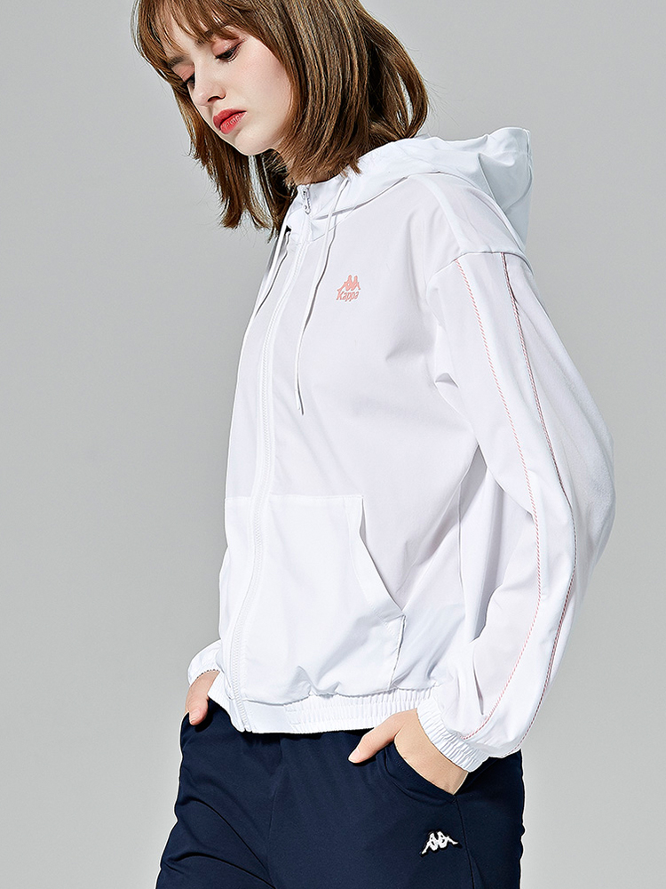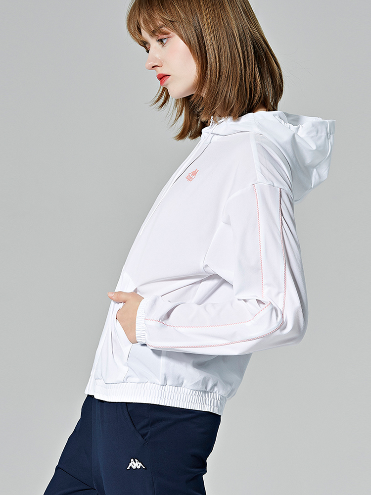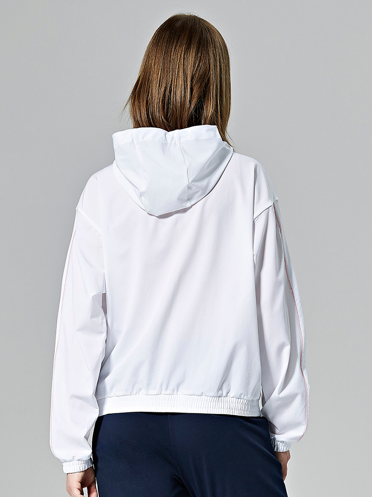 这款小清新的外套让你一秒就爱上。简约的纯白色更衬肤色,减龄效果杠杠的。同时衣身印有创意的LOGO印花图案,使得衣服不再单调,让人忍俊不禁,为衣服更添趣味感和俏皮感,更能衬托出年轻的活力无限,张扬你的自由不羁态度。连帽抽绳的设计,完美包裹你的头部,避免寒风的入侵。