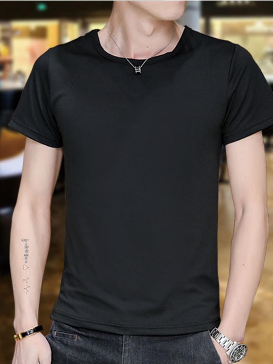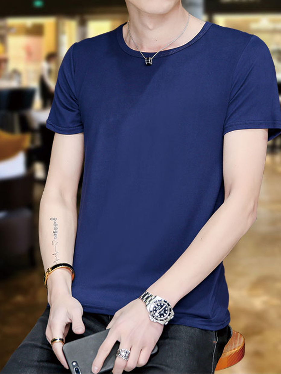 精选优质混纺面料,独特的纹理,彰显男性绅士气质。圆领套头设计,简约大方,利落有型。立体剪裁,视觉上更修身,不规格下摆,时尚个性,潮范十足。简约而不凡的T恤,彰显时尚潮流的个性品味。经典的圆领,适合各种脸型,衬托简约的一面,穿着舒适。