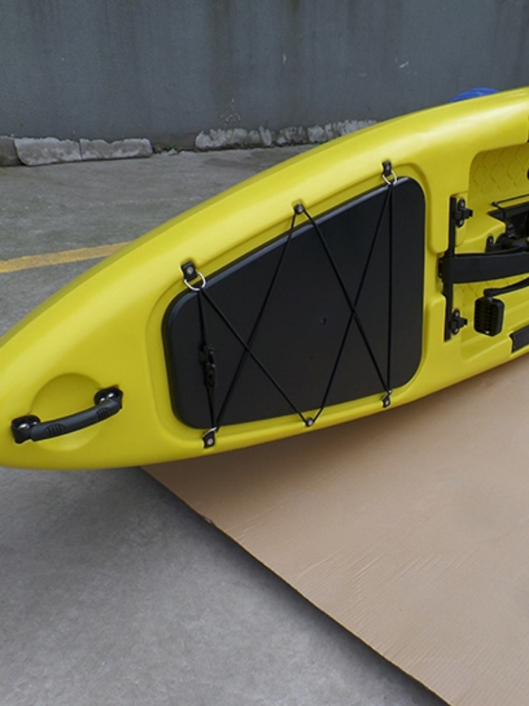 这款钓鱼艇外形非常美观,尾部还设有储物仓和弹力绳,设计贴心人性化。船边还设有提手和斜插钓鱼座,能很好的保护垂钓物的安全和乘坐人员的安全。