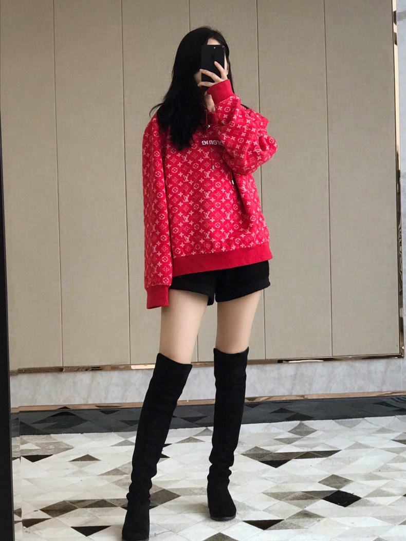 前后对称的白色印花,经典的色彩搭配,带来视觉冲击力;连帽门襟一体的拉链设计,极具个性;宽松的版型,罗纹拼接的袖口及下摆
