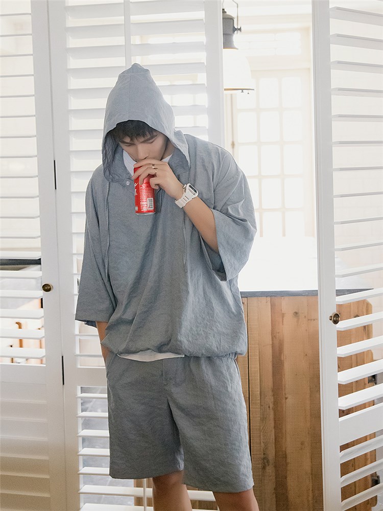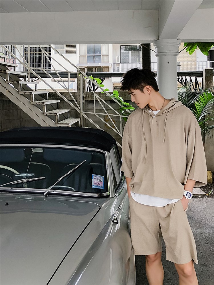 网布材质,穿着舒适透气,短裤版型,修饰腿部线条,套装设计,省去搭配烦恼,连帽设计,彰显男士魅力,连帽的设计,休闲感十足,宽松T恤,让你轻松驾驭,短袖设计,修饰手臂线条,绅士风格,彰显男士魅力。