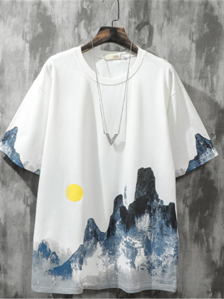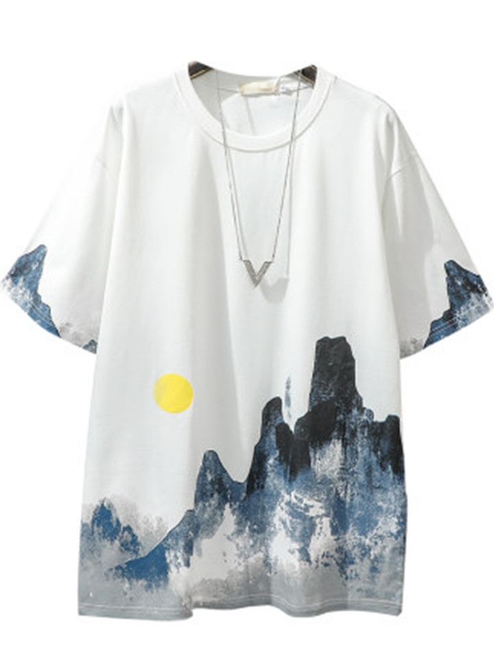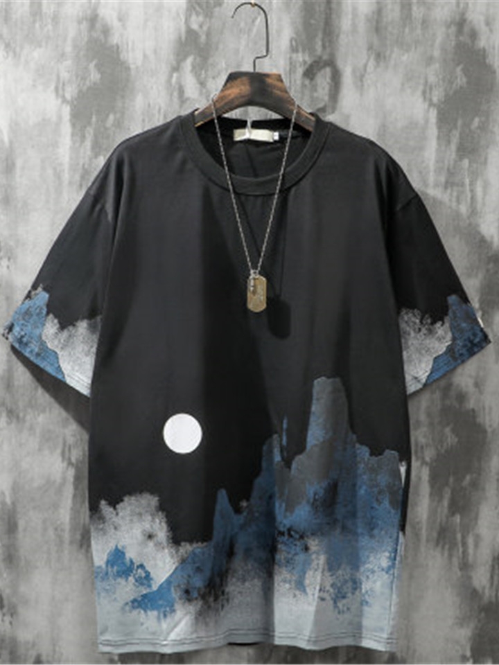 这款短袖的T恤,展现简约设计元素,点缀的水墨印花元素打破纯色单调营造中国风,上身帅气有型简约挺括,轻松穿出时尚气质,搭配宽松工装裤,散发迷人魅力。