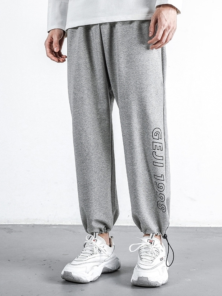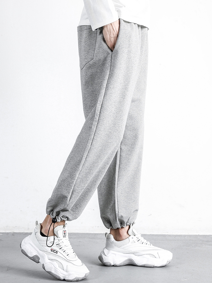一款纯棉面料的束脚运动裤。运动裤因舒适不拘身而深受大家喜爱,腰间抽绳系带的设计,可随意调节宽松度,无论微胖还是纤瘦的男士皆可搭配穿着。