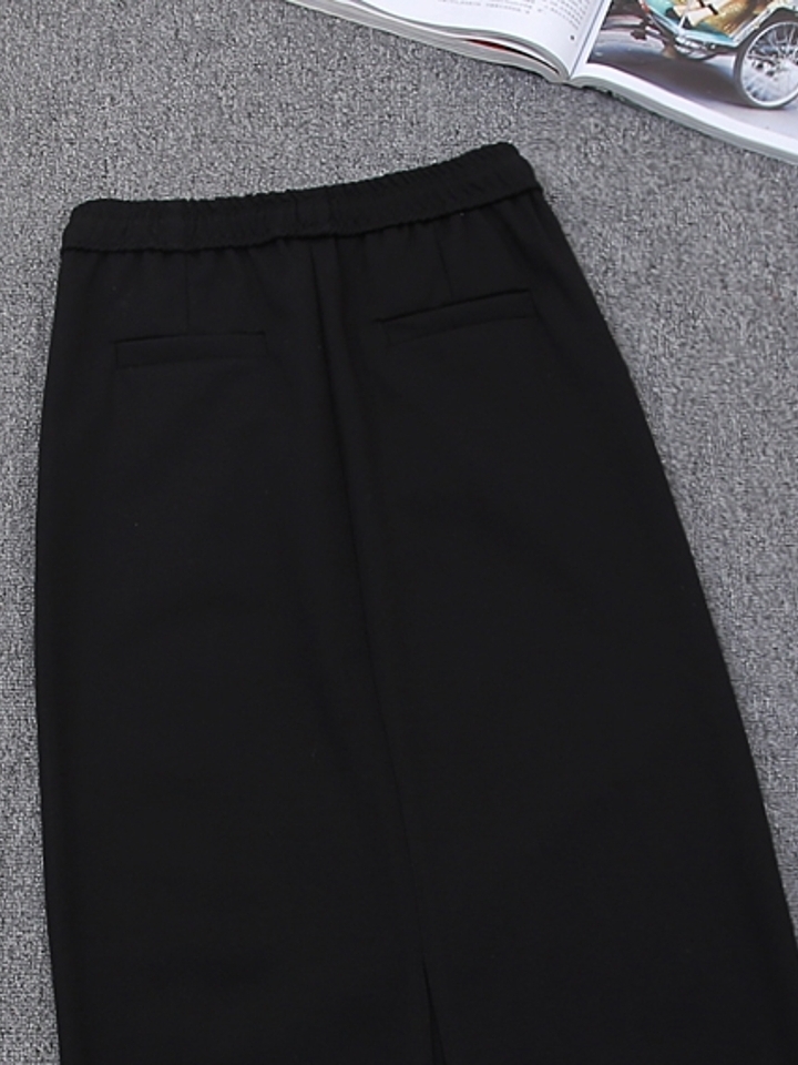 高腰的设计,收腰的剪裁,展现视觉显瘦的效果,展露纤细的腰身,建筑质感的多片拼接设计,彰显时尚的摩登风潮,后开叉设计,尽显性感迷人魅惑。