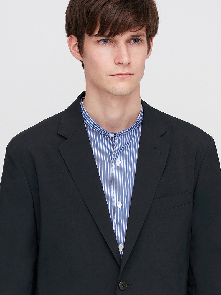 质感舒适柔软,而且面料透气温润,不紧绷不闷热。设计平顺自然,具有良好的垂落性,再配上帅气的驳领,更能一举打造酷雅个性的穿衣形象。简洁的门襟干脆别致,一展利落的闭合工艺。