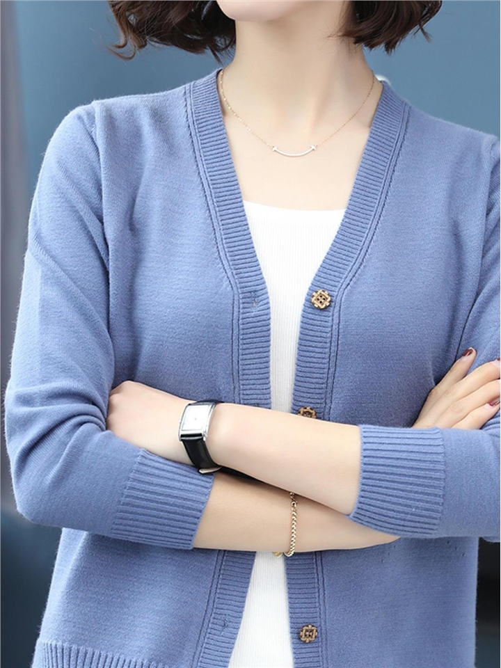 V领的设计具有修饰脸型的作用哦,轻松凸显出你的迷人锁骨线条,同时还增添浓浓的优雅女人味。这款针织衫结合时下新潮的设计,为都市女性提供精致却不失个性的穿搭体验。