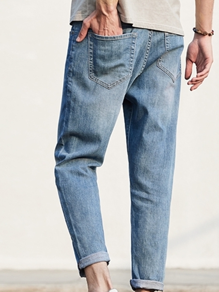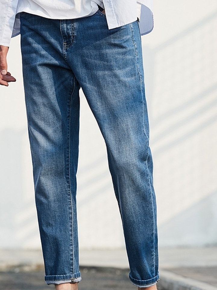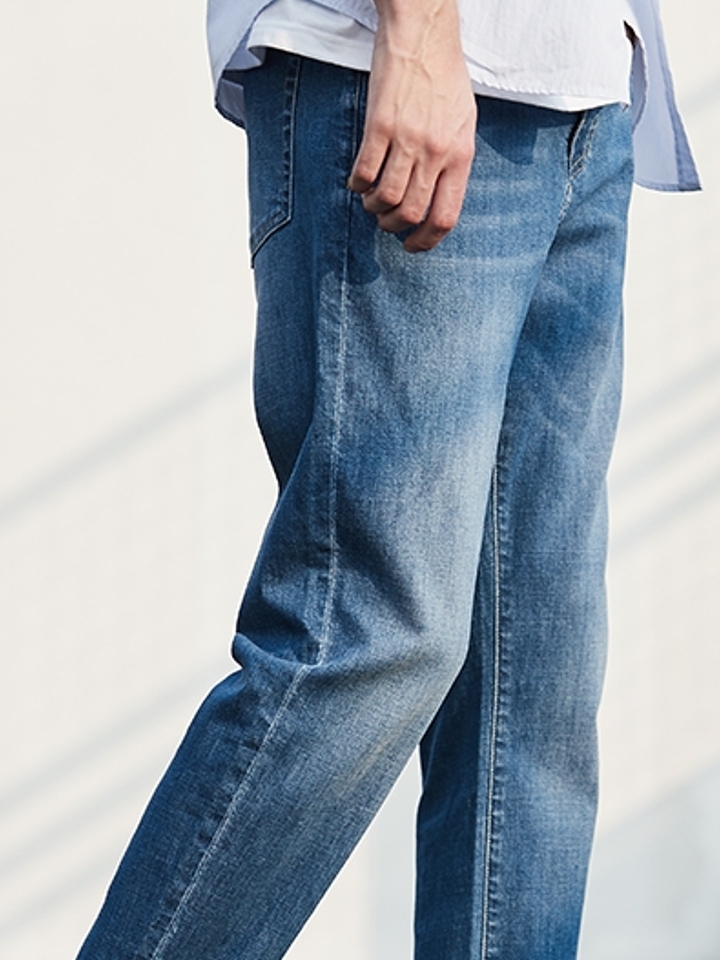 这条牛仔裤采用了更加挺括的牛仔面料,使得这条裤子的造型感更强,浅蓝色的选色,让整条裤子显得更加青春洋溢,同时更加百搭,其中特添的毛边处理技术更是增添时尚元素,酷炫潮男由此诞生。