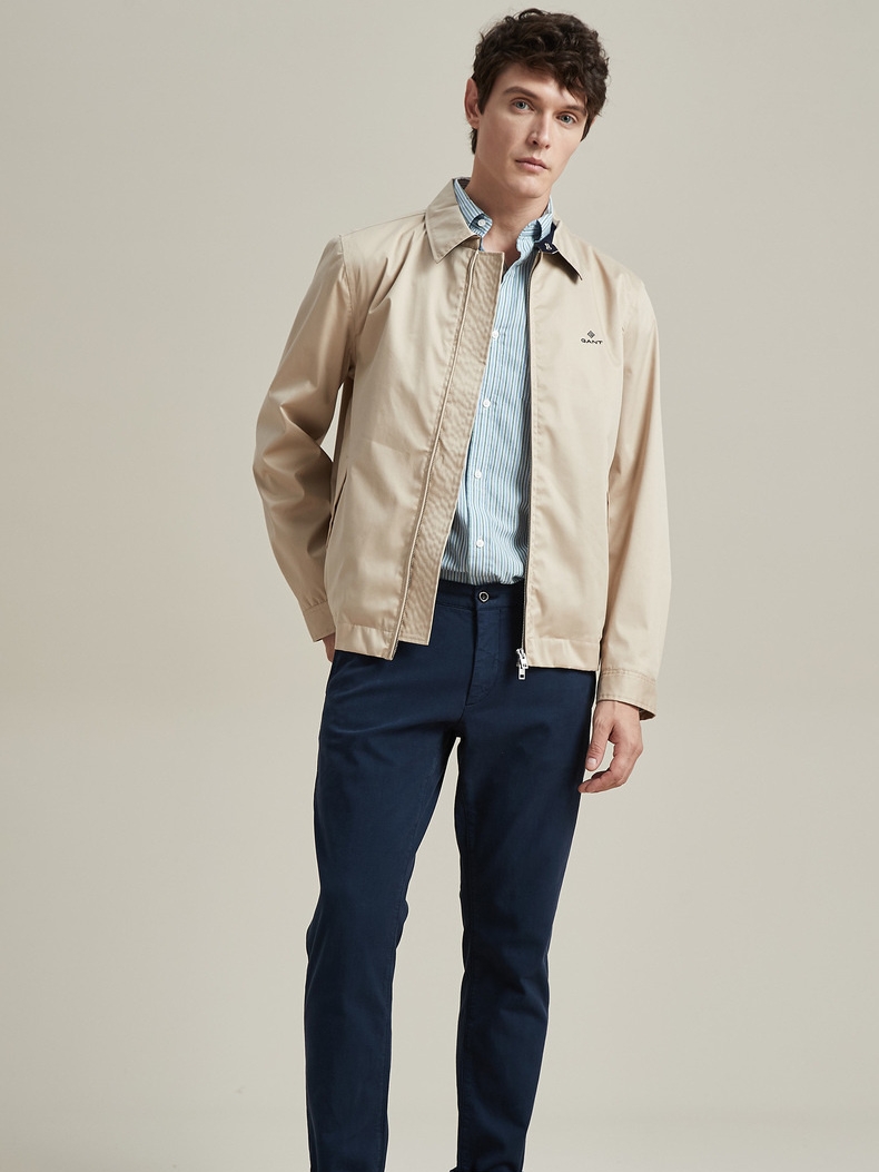 GANT品牌起初他们在每件衣服的内襟绣上一个“G”字母,逐渐地,这个字母成为他们品质的代表,顾客们追随的榜样。在GANT帝国迅速膨胀的过中,GANT开发了里程碑式的独特服装款式——领扣衬衣,立刻成为时尚人士的一种新经典。