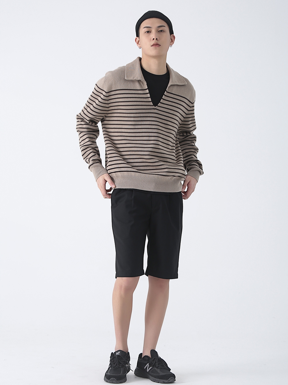简约的高腰设计,搭配上修身的版型,上身显瘦又显高。