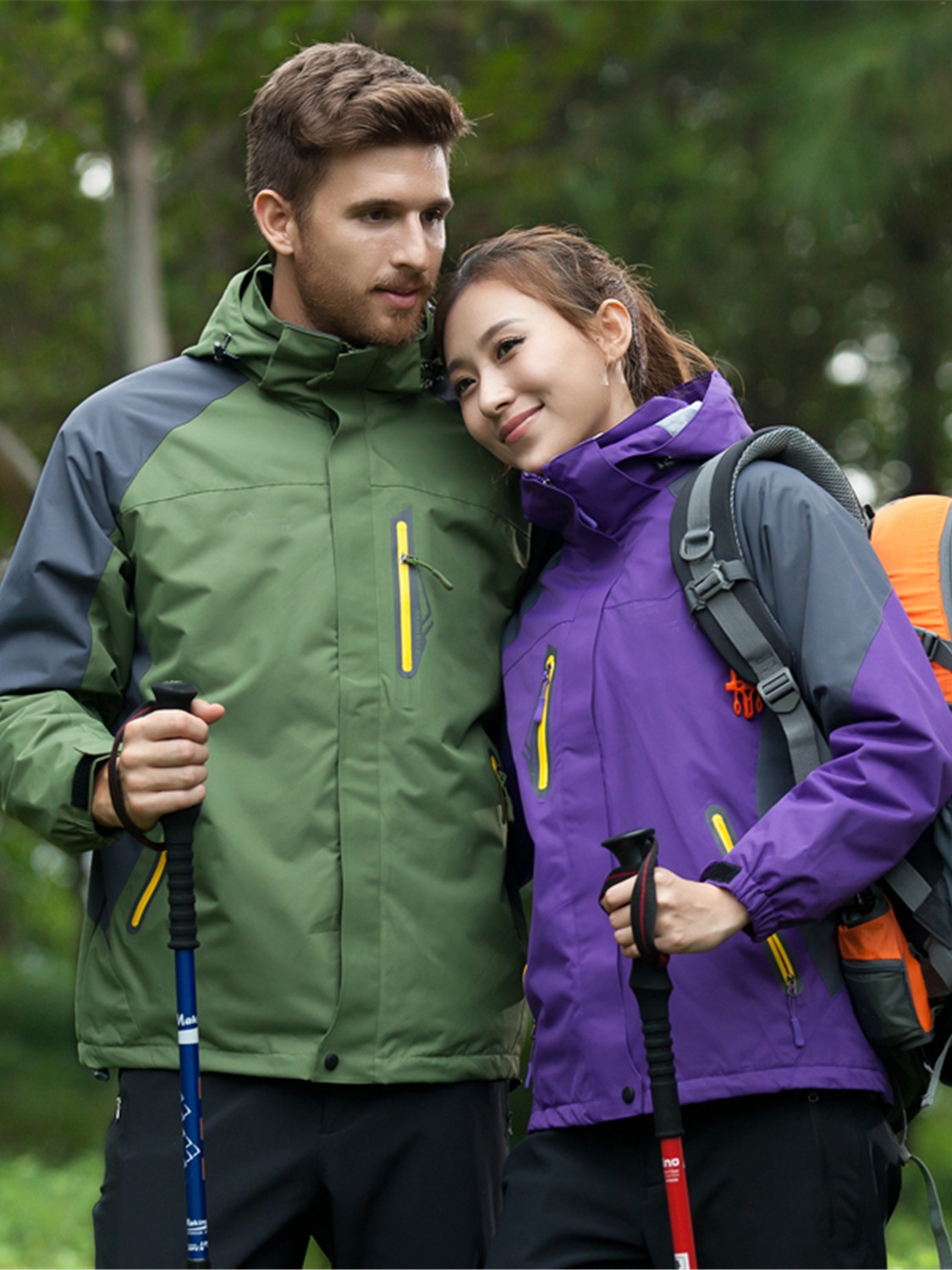 性价比很高的一款户外冲锋衣,不但价格实惠,而且性能超强,并且是男女通穿的款,最适合小情侣们一同选购了。这款冲锋衣选用拼色设计,很有层次感和设计感,穿上别具一格,个性独特。两件套的加厚设计更加专注保暖,秋冬季节也能勇敢探索,温暖前行。