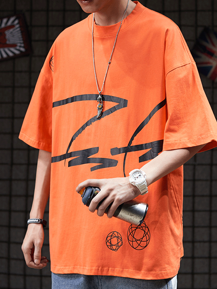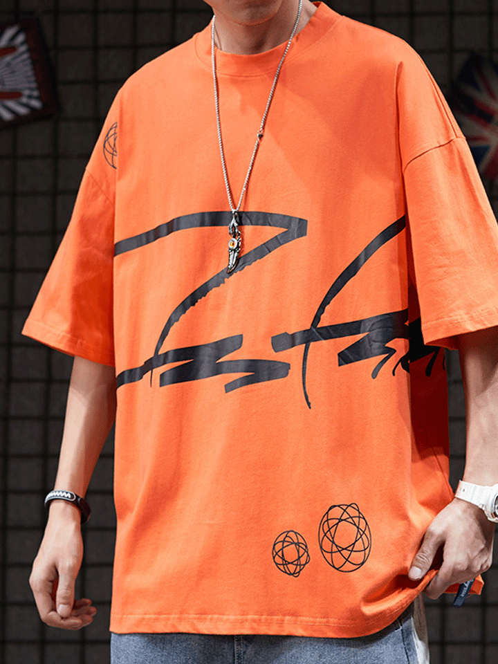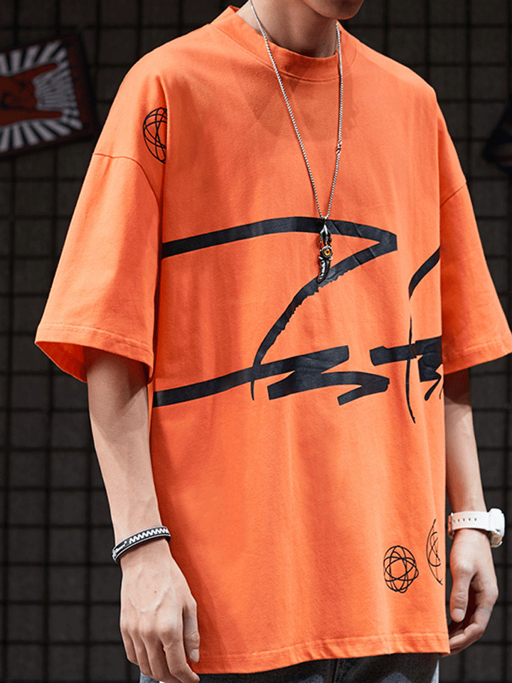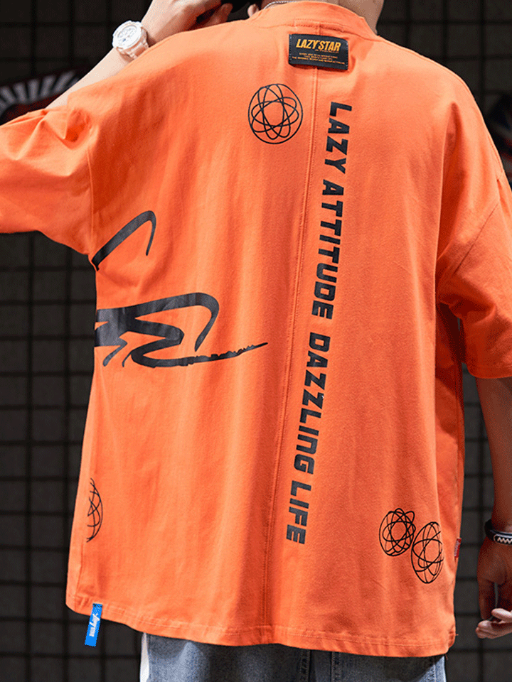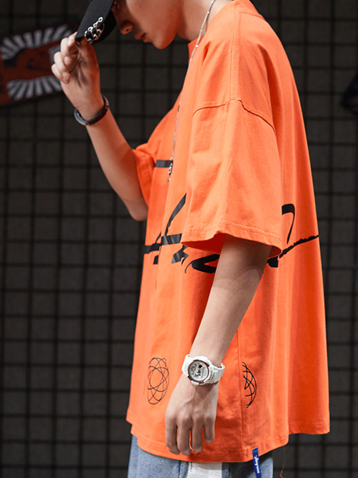 潮流字母印花T恤、加上脏橘色的搭配,给人以眼前一亮的感觉!简约时尚的款式,个性化十足,上身效果还超好哦!!