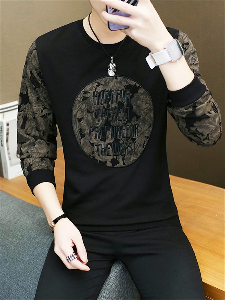 长袖设计,修饰手臂线条,圆领设计,彰显男士魅力,绅士风格,彰显男士魅力,胸前印花,彰显潮流个性,印花设计,增加衣服亮点,纯色打底衫,简约又百搭,宽松版型,让你轻松驾驭,圆领设计,彰显男士魅力。