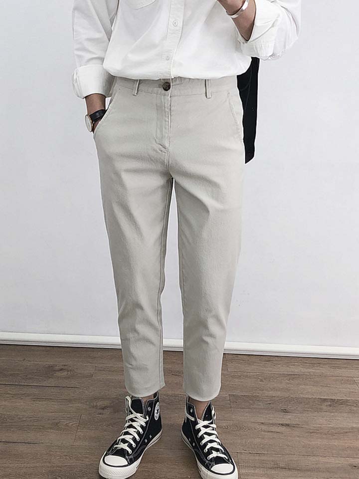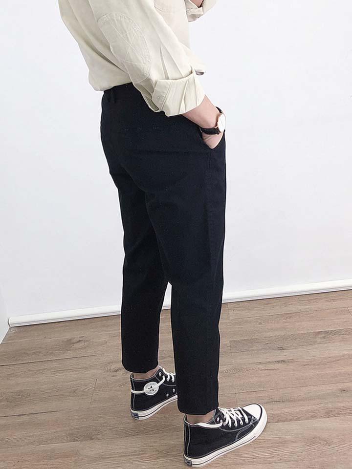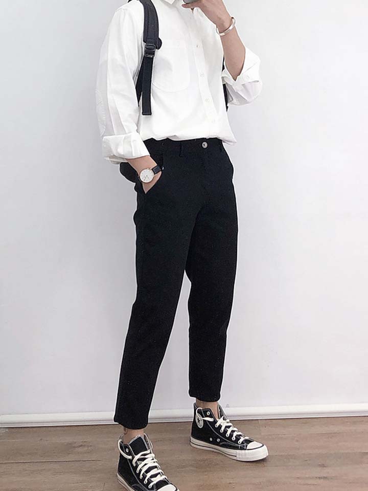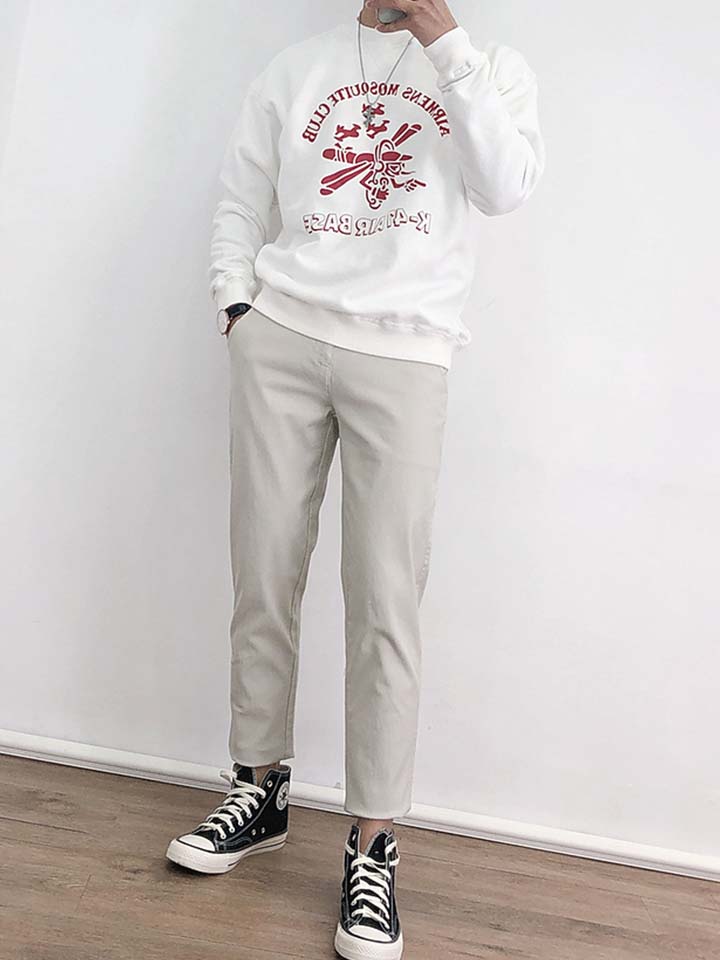 直筒的剪裁,精致的做工,平稳的车线,整体美观且耐穿,视觉上非常的显瘦且有型;日常搭配上面,选择宽松印花图案T恤衫就可以了,轻松展现着男性个性感。