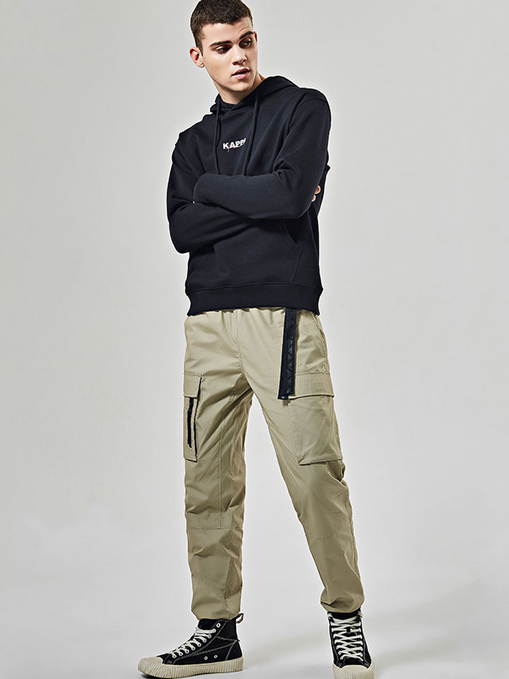 脚口经典的松紧收口,有效修饰腿型,经典大方且不易变形。简约松紧裤腰结合抽绳的设计,带来简便的穿着体验。经典斜插大容量时尚口袋,完美演绎潮流。