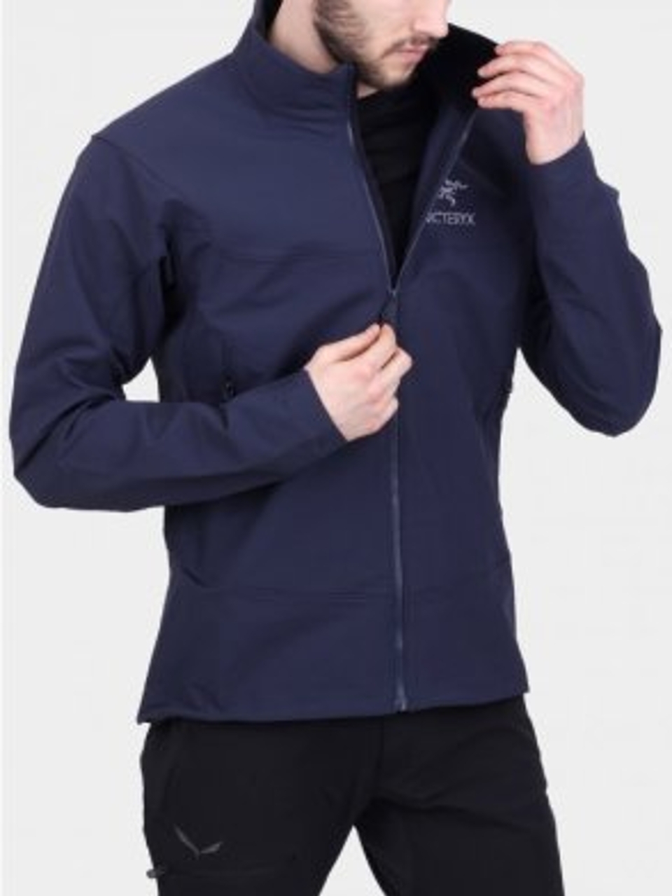 此款始祖鸟男款防风软壳衣,采用轻量的Wee Burly双层编织面料,高领口设计防风、耐候、设有两个插手口袋和一个内置层压胸袋,可调节的下摆抽绳,可防止寒气入侵。防泼水、弹力耐用,防潮防风,适合全天候穿着。