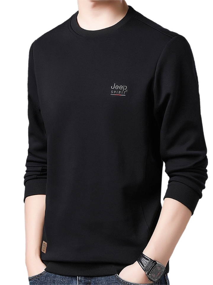 这款帅气潮范儿十足的纯色长袖T恤衫,可以配上简单宽松的黑色长裤,打造休闲气质,再配上低调奢华的机械表,立刻街头风味十足。